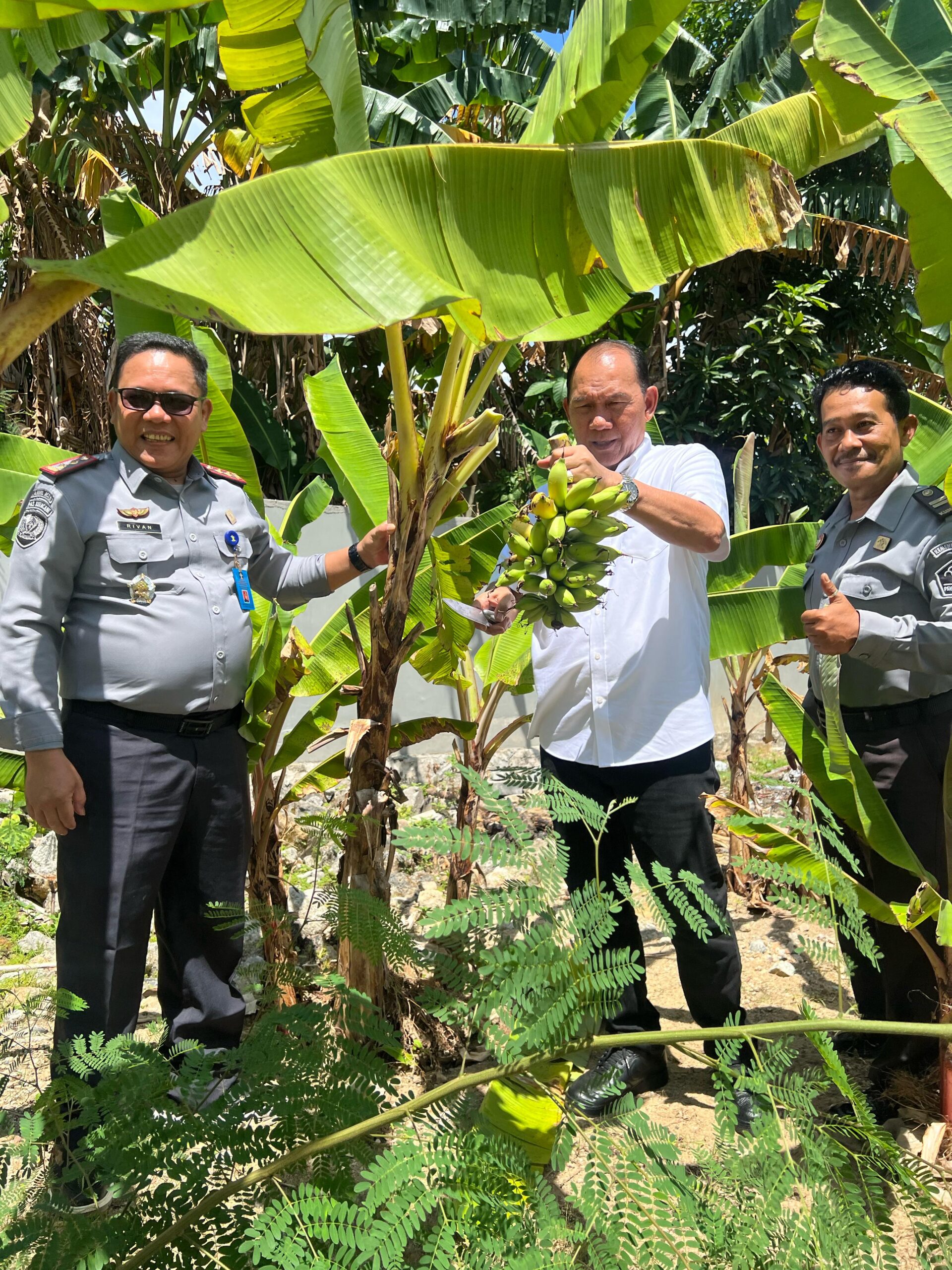 Kepala Kantor Wilayah Direktorat Jenderal Pemasyarakatan (Ditjenpas) Kepulauan Bangka Belitung, Herman Sawiran, menghadiri acara panen raya pisang dan sayuran di Balai Pemasyarakatan Kelas II Tanjung Pandan, pada Senin (24/02/2025).