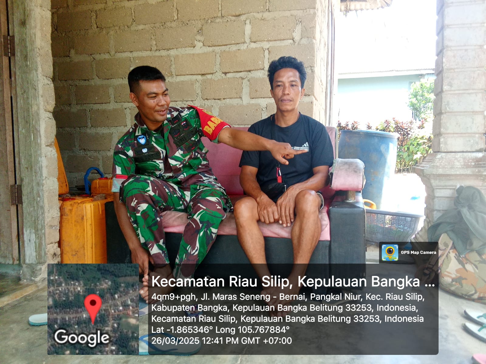 Belinyu,kejarberitanews.com-Pererat silahturahmi Babinsa Koramil 413-02/Belinyu Melaksanakan Komsos dengan Tokoh masyarakat di desa banyuasin, Rabu (26/03/2025)
