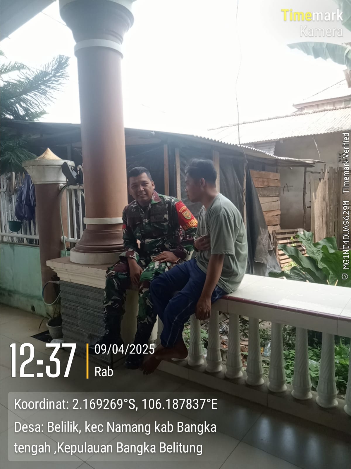 pangkalan Baru,kejarberitanews.com-Pererat silahturahmi dengan warga binaan babinsa koramil 413-09/Pangkalan baru komsos diteras rumah warga bertempat di Desa belilik, Rabu (09/04/2025)