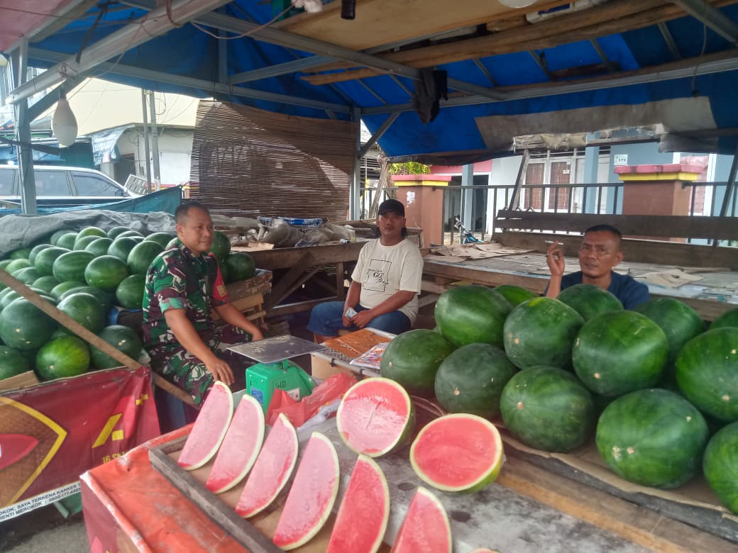 Kegiatan ini menyasar Bapak Udin, salah satu pedagang buah lokal. Selain untuk menjalin silaturahmi yang erat, kehadiran Sertu Albar bertujuan untuk menggali informasi terkait situasi keamanan dan perkembangan harga kebutuhan pokok, khususnya buah-buahan, di wilayah tersebut.