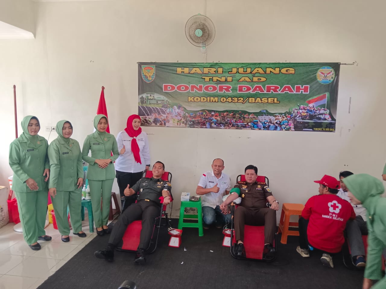 Bangka Selatan, kejarberita-news.com – Dalam rangka memperingati Hari Juang Kartika, Kodim 0432/Basel bekerja sama dengan PMI Kabupaten Bangka Selatan menggelar kegiatan bakti sosial donor darah dan pengecekan kesehatan di Aula Makoramil 432-01/Toboali, Jalan Jenderal Sudirman, Toboali, Rabu (10/12/2025).