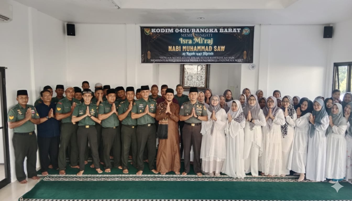 Bangka Barat, kejarberita-news.com – Kodim 0431/Bangka Barat menggelar kegiatan Peringatan Isra Mi’raj Nabi Muhammad SAW Tahun 1447 Hijriah, bertempat di Musala Makodim 0431/Bangka Barat, Kamis (29/01/2026).