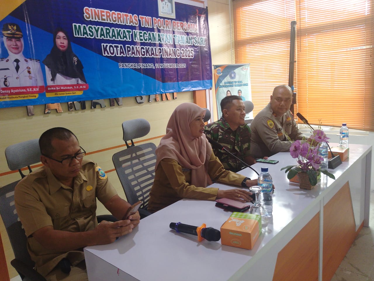 Pangkalpinang, kejarberita-news.com – Guna memantapkan stabilitas keamanan dan ketertiban masyarakat, jajaran TNI dan Polri di Kecamatan Taman Sari, Kota Pangkalpinang, menggelar pertemuan sinergitas bersama para kepala desa dan lurah bertempat di Kantor Kecamatan Taman Sari pada Selasa, (11/11/2025)