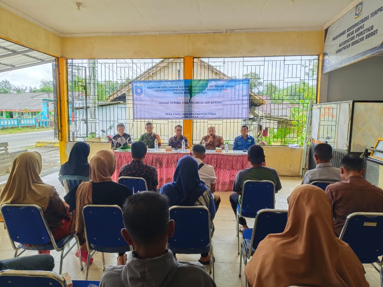 Bangka Barat, kejarberita-news.com – Dalam rangka memperkuat kemitraan wilayah dan mendukung program pemerintah di bidang penyediaan air bersih, Sertu Solihin, Babinsa Koramil 431-01/Jebus, menghadiri kegiatan Sistem Penyediaan Air Minum (SPAM) jaringan perpipaan Dana Alokasi Khusus (DAK) Tahun 2025 berupa serah terima dan promosi air bersih. Kegiatan tersebut dilaksanakan pukul 09.30 hingga 10.40 WIB, bertempat di Kantor Desa Kapit, Kecamatan Parittiga, Kabupaten Bangka Barat.pada Kamis 18 Desember 2025