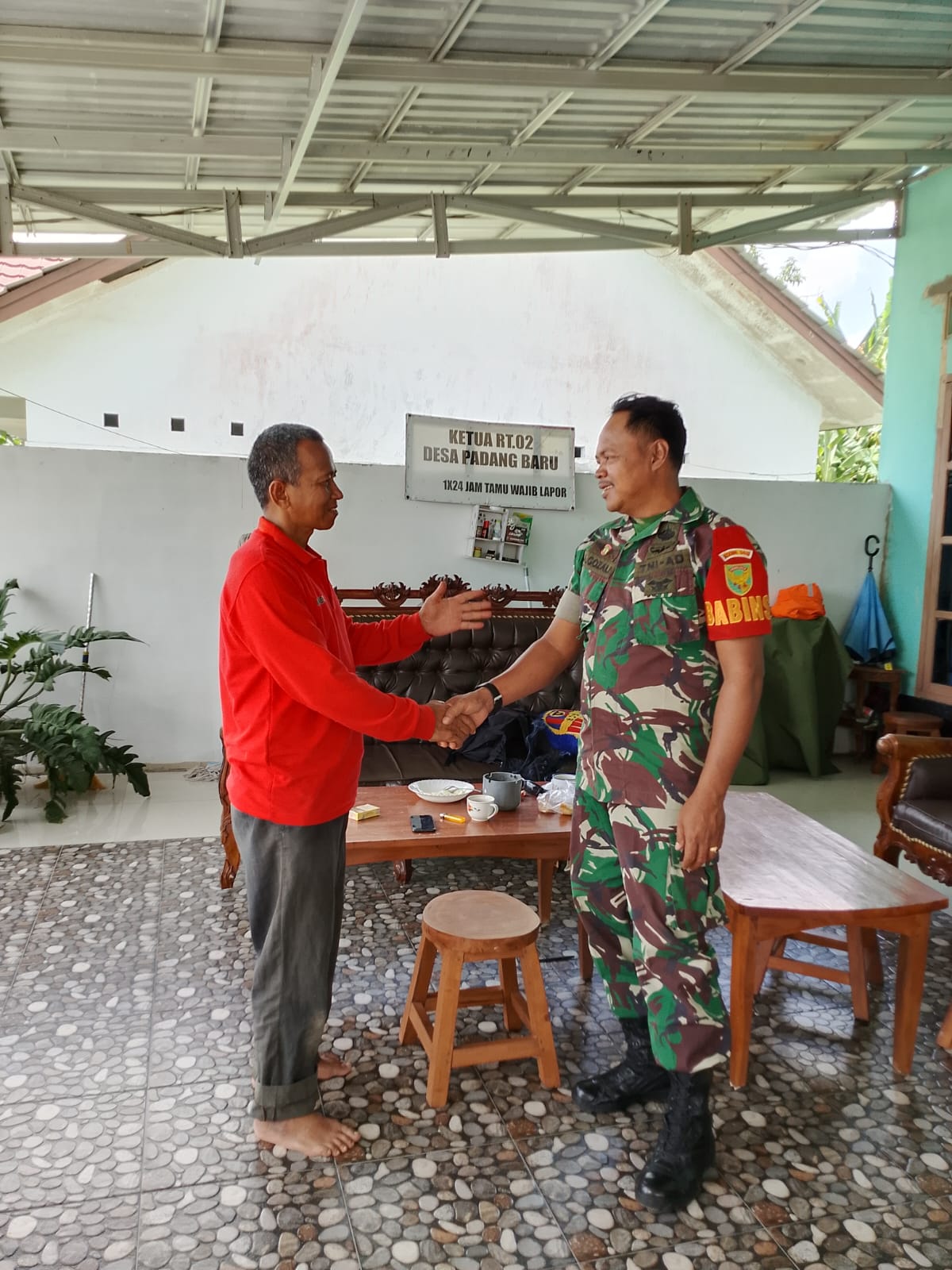 Padang Baru, kejarberita-news.com – Sertu A. Gozali, Babinsa Desa Padang Baru dari Ramil 413/09 Pangkalan Baru, memperkuat sinergi dengan aparat desa melalui Komsos bersama Bapak Junaidi, Ketua RT 02 Desa Padang Baru, Minggu (19/10/2025)