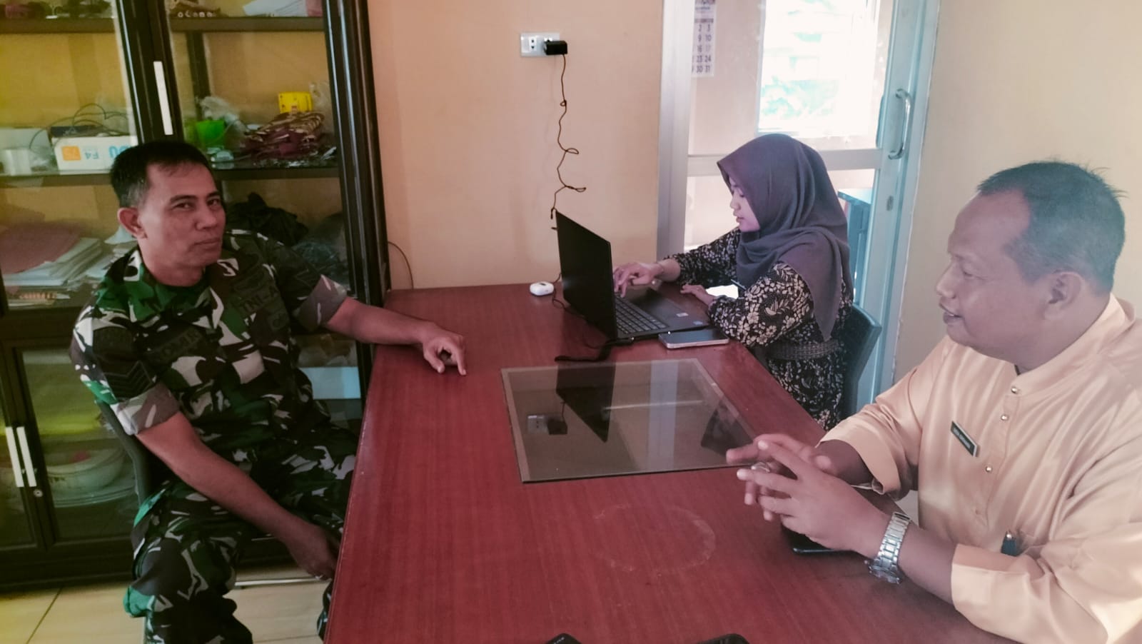 Kedatangan Serma Romi disambut langsung oleh Bapak Lurah beserta jajaran staf Kelurahan Gabek Satu dalam suasana yang akrab dan penuh kekeluargaan.