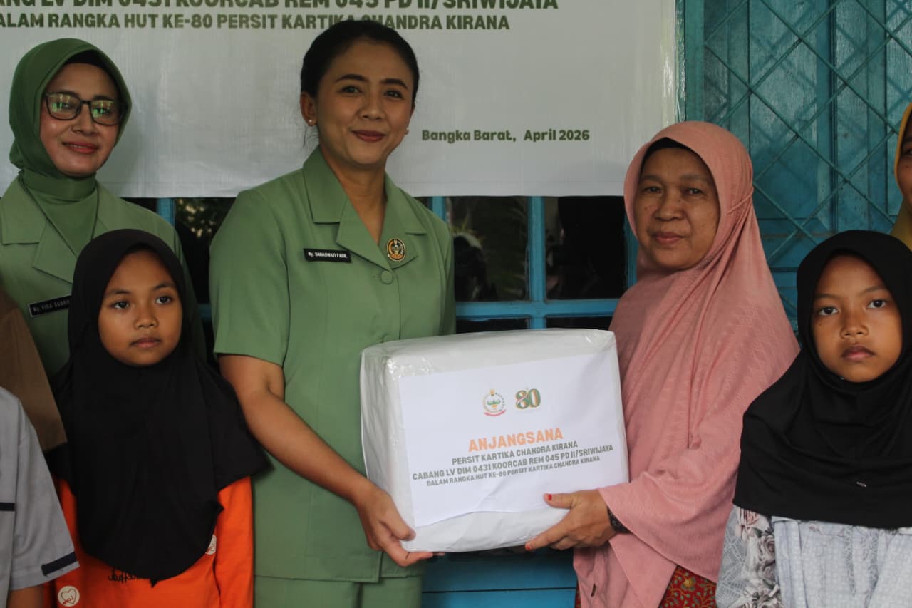 Bangka Barat, kejarberitanews.com – Dalam rangka memperingati Hari Ulang Tahun (HUT) ke-80 Persit Kartika Chandra Kirana, Persit KCK Cabang LV Dim 0431/Bangka Barat melaksanakan kegiatan anjangsana sebagai bentuk kepedulian sosial dan kebersamaan, Kamis (09/04/2026).