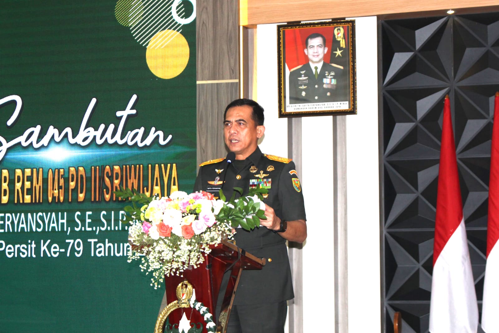 Sambutan Pembina Persit KCK Koorcab Rem 045 PD ll/Swj, Danrem 045/Gaya Brigjen TNI Safta Feryansyah S.E.,S.I.P.,M.Han., saya ucapkan selamat ulang tahun, semoga di usianya yang ke-79 peran persit semakin meningkat baik untuk keluarga, organisasi maupun masyarakat.