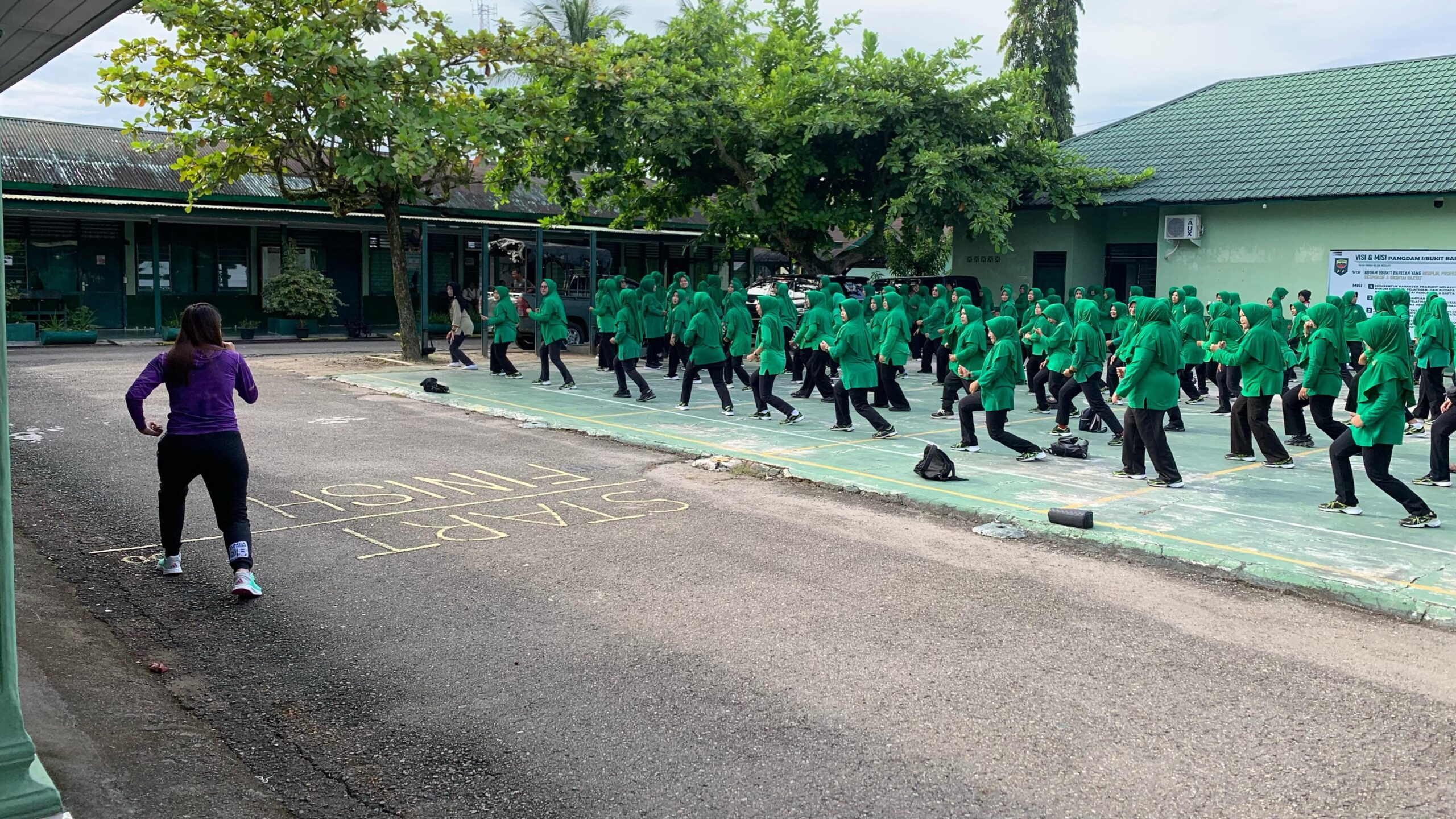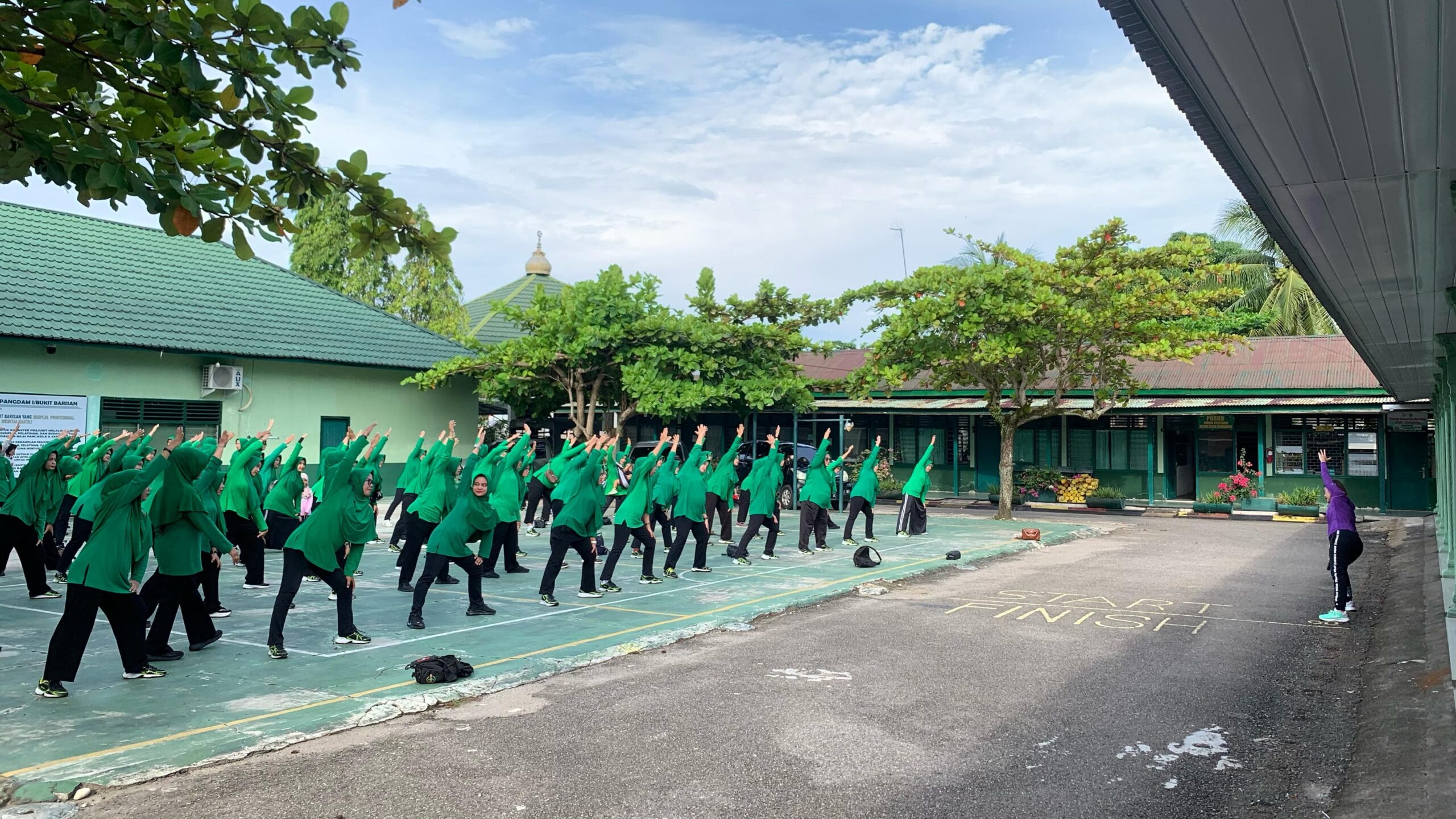 Kegiatan dimulai dengan melaksanakan peregangan otot guna menghindari cedera otot, dilanjut senam bersama, kegiatan ini bertujuan untuk meningkatkan kebugaran jasmani serta mempererat tali silaturahmi antara personil Militer dan Persit.