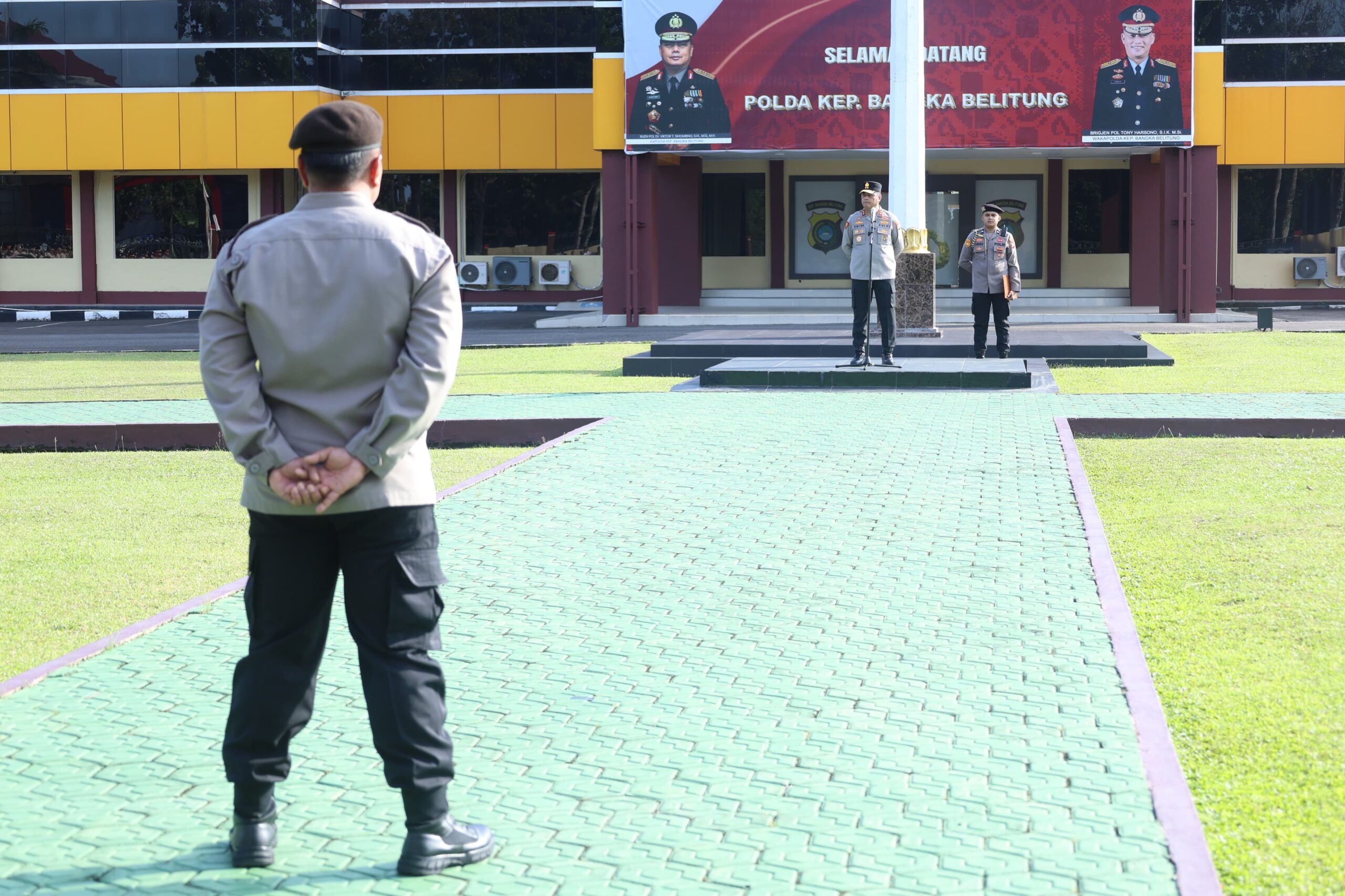 Apel digelar di halaman Mapolda, Senin (3/11/25) yang diikuti Wakapolda Brigjen Pol Tony Harsono, Pejabat Utama, seluruh personel hingga ASN dilingkungan Polda Babel.