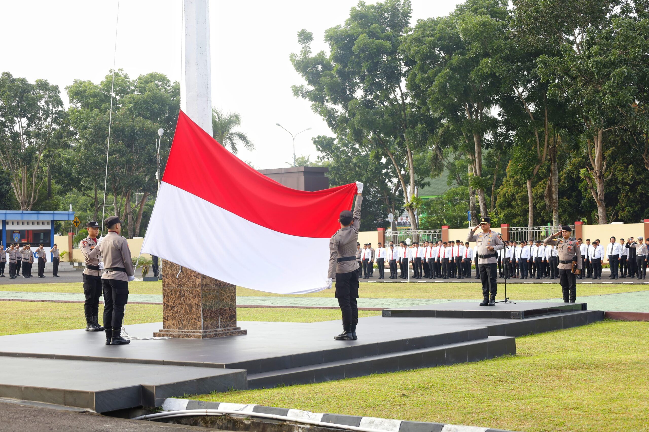 Dalam upacara tersebut, Kapolda menyampaikan apresiasi kepada seluruh personel yang telah melaksanakan tugas dengan baik dan benar terutama pelayanan kepada masyarakat.
