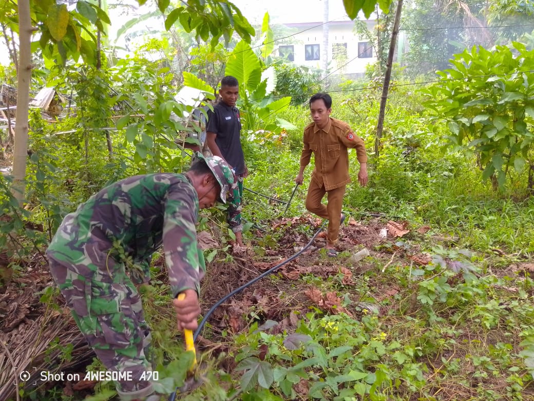 Botungobungo,kejarberitanews.com-Satgas TNI Manunggal Membangun Desa (TMMD) bersama Babinsa Koramil 1314-01/Kwandang dan aparat desa melakukan pemasangan pipa air bersih di Desa Botungobungo, Kecamatan Kwandang, Selasa (20/5/2025).