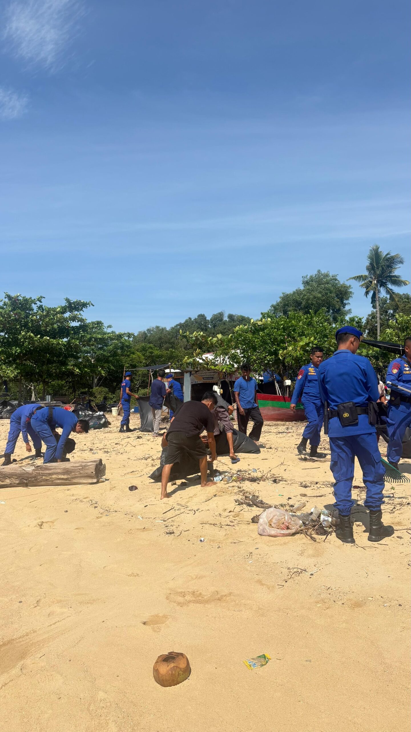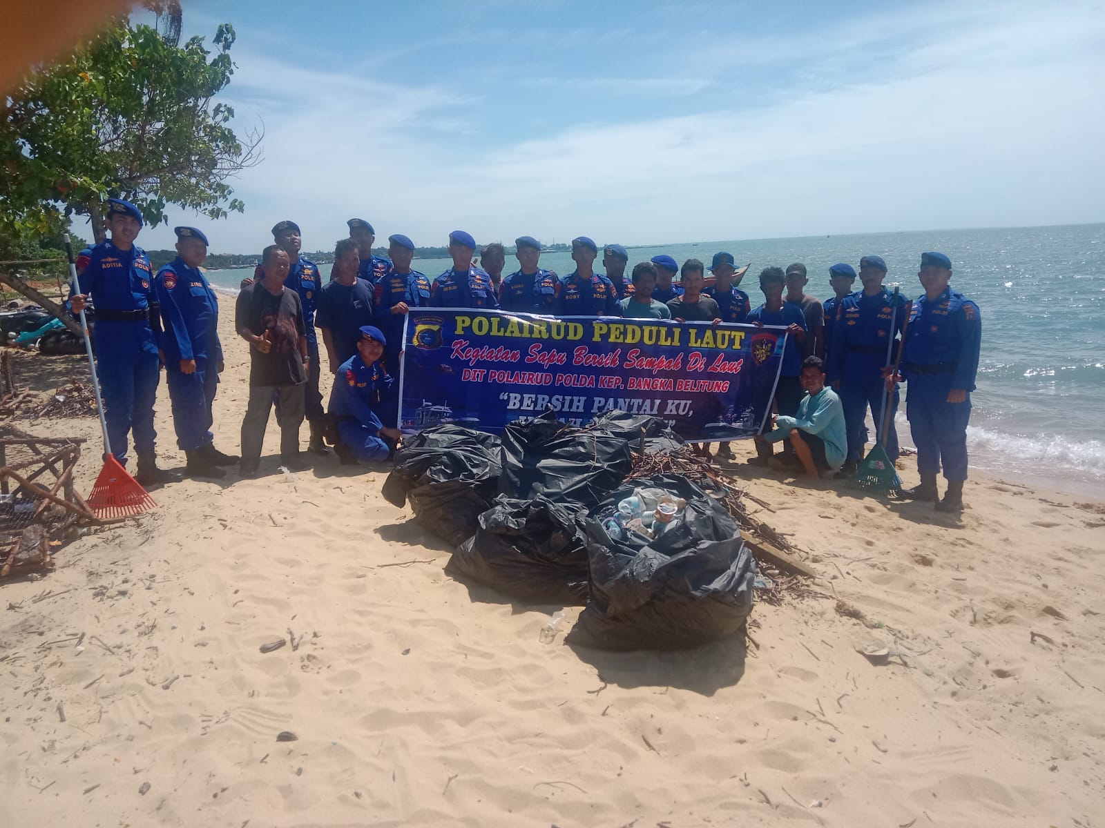 Kegiatan yang dimulai pukul 09.30 WIB ini melibatkan personel Sat Polairud Polres Bangka Barat, Dit Polairud, Forum Infras Nelayan Pesisir, serta Kelompok Nelayan Laut Harapanku. Dengan peralatan sederhana, mereka bergotong royong memungut sampah dan membersihkan pesisir pantai dari plastik serta limbah laut.