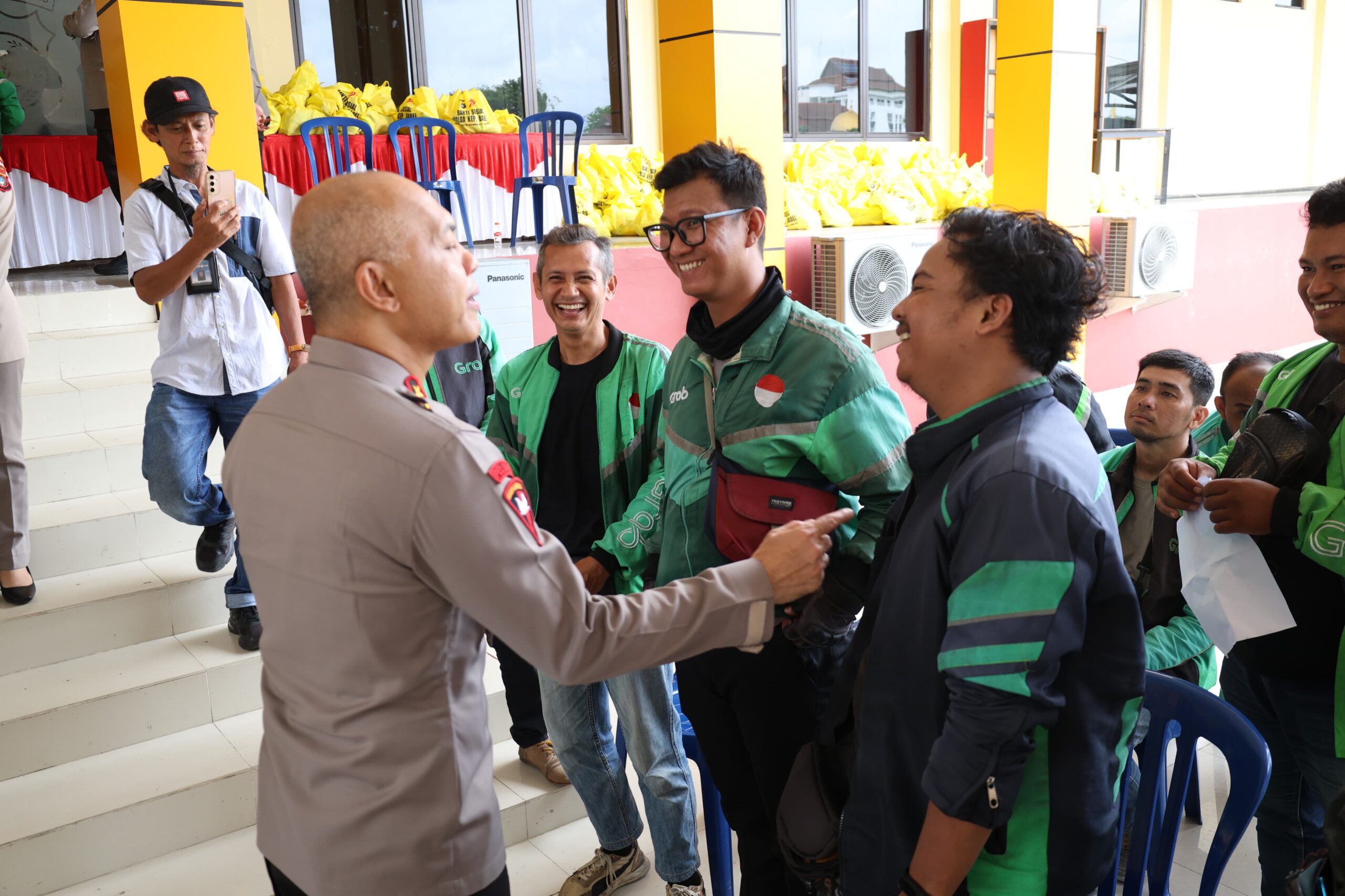 Selain menyediakan layanan pemeriksaan kesehatan gratis, pihaknya juga memberikan bantuan sosial (bansos) kepada ratusan masyarakat khususnya para driver ojol.