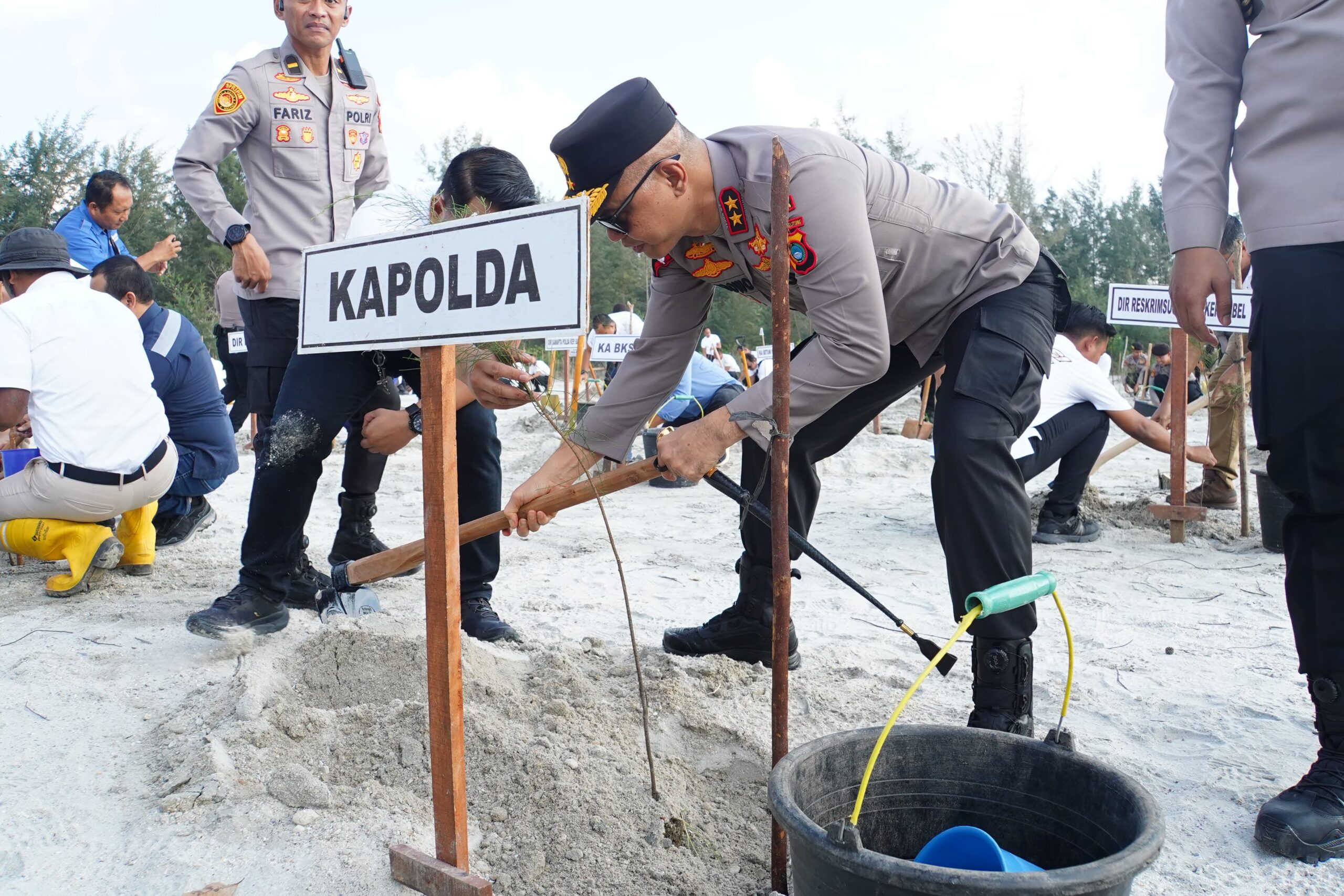Kapolda mengatakan, penanaman ribuan bibit pohon ini dilaksanakan dalam rangka bakti Polri untuk bumi di negeri serumpun sebalai ini.