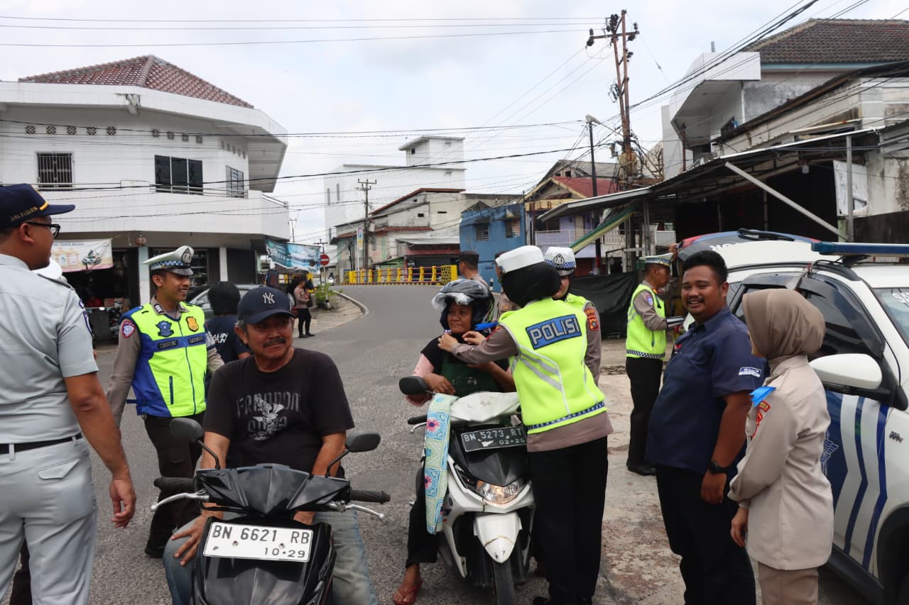 Polisi Bagi-Bagi Helm Gratis di Pasar Mentok, Tegur Pengendara Tak Pakai Standar