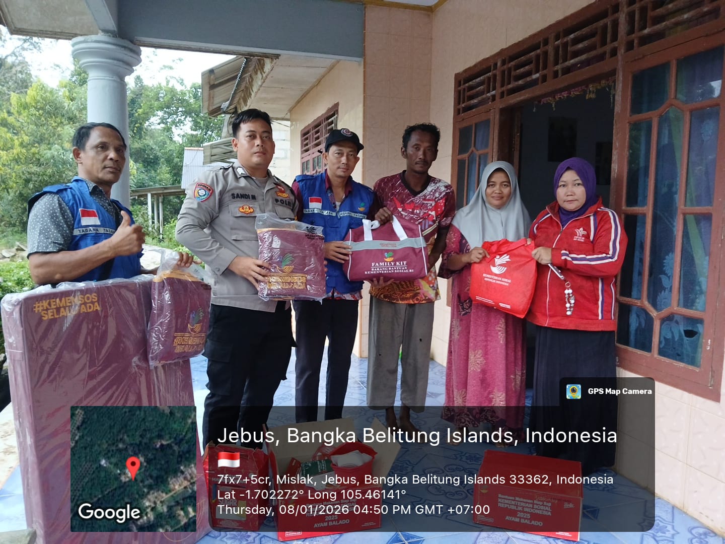 Sebagai tindak lanjut, Polres Bangka Barat melalui Bhabinkamtibmas Polsek Jebus mendampingi Tim BPBD Kabupaten Bangka Barat dan Tagana Dinas Sosial dalam penyaluran bantuan kepada warga yang terdampak bencana.