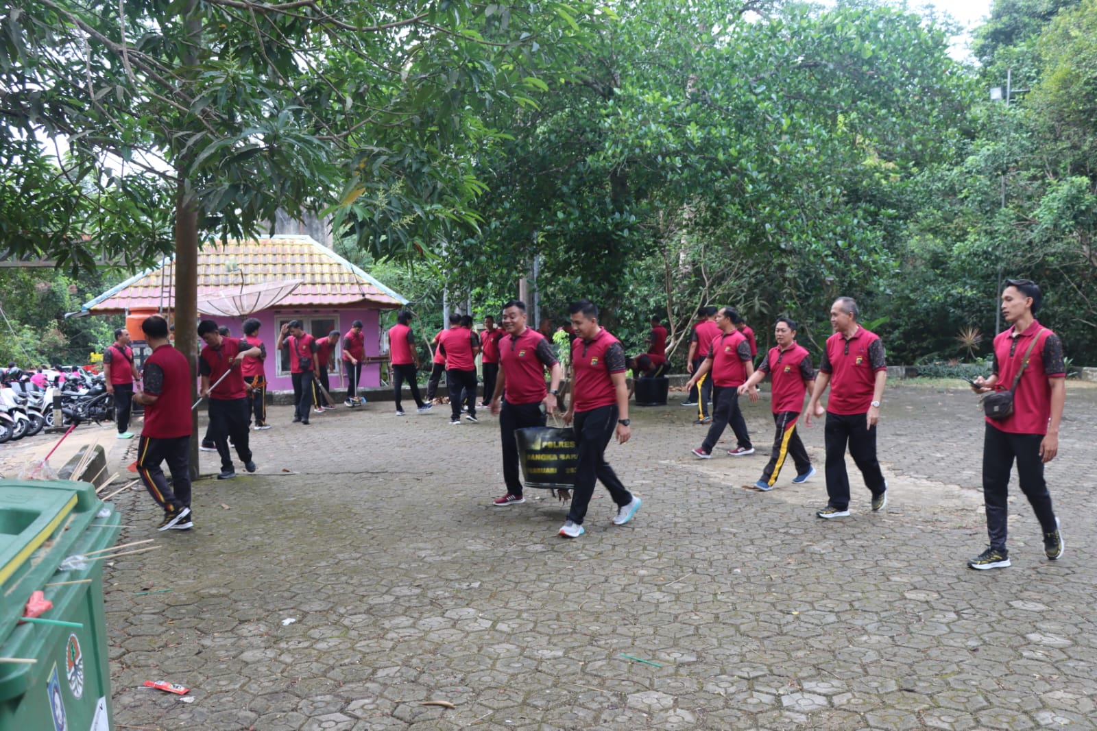 Usai apel, personel Polres Bangka Barat, Bhayangkari, serta perwakilan DLH dan Bawaslu langsung bergerak membersihkan sampah di sepanjang akses Pos 1 Bukit Menumbing. Mereka juga merapikan area sekitar agar lebih tertata dan nyaman bagi pengunjung.