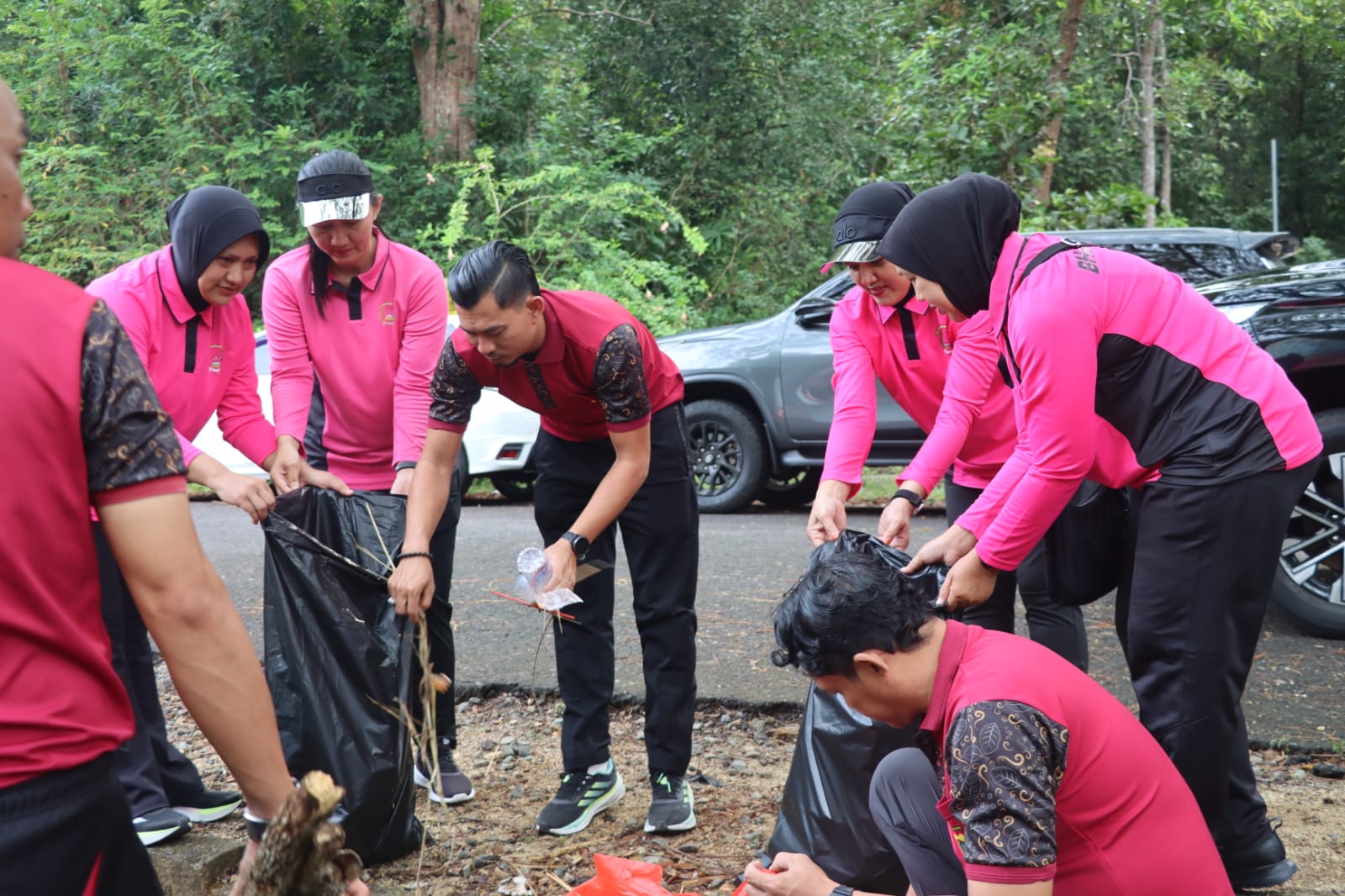 Usai apel, personel Polres Bangka Barat, Bhayangkari, serta perwakilan DLH dan Bawaslu langsung bergerak membersihkan sampah di sepanjang akses Pos 1 Bukit Menumbing. Mereka juga merapikan area sekitar agar lebih tertata dan nyaman bagi pengunjung.