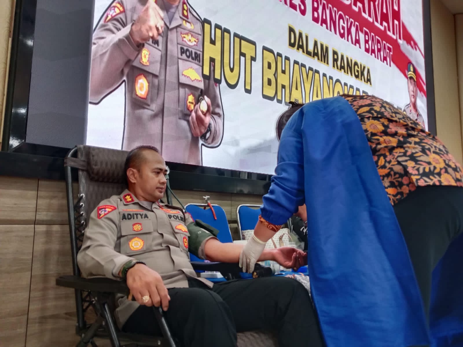 Kapolres Bangka Barat AKBP Pradana Aditya Nugraha, S.H., S.I.K. melalui PS Kasi Humas Polres Bangka Barat Iptu Yos Sudarso menyampaikan bahwa kegiatan donor darah ini merupakan bagian dari rangkaian kegiatan sosial dalam memperingati HUT Bhayangkara yang ke-79 tahun ini.