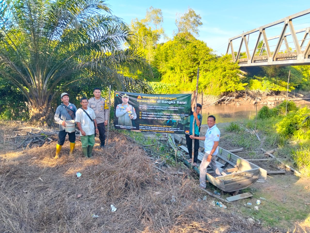 Bangka Barat, kejarberita-news.com – Polres Bangka Barat memasang spanduk imbauan waspada serangan hewan liar, khususnya buaya, di sekitar aliran sungai Desa Peradong, Dusun 2 Menggarau, Kecamatan Simpang Teritip, Rabu (11/2/2026) sore.
