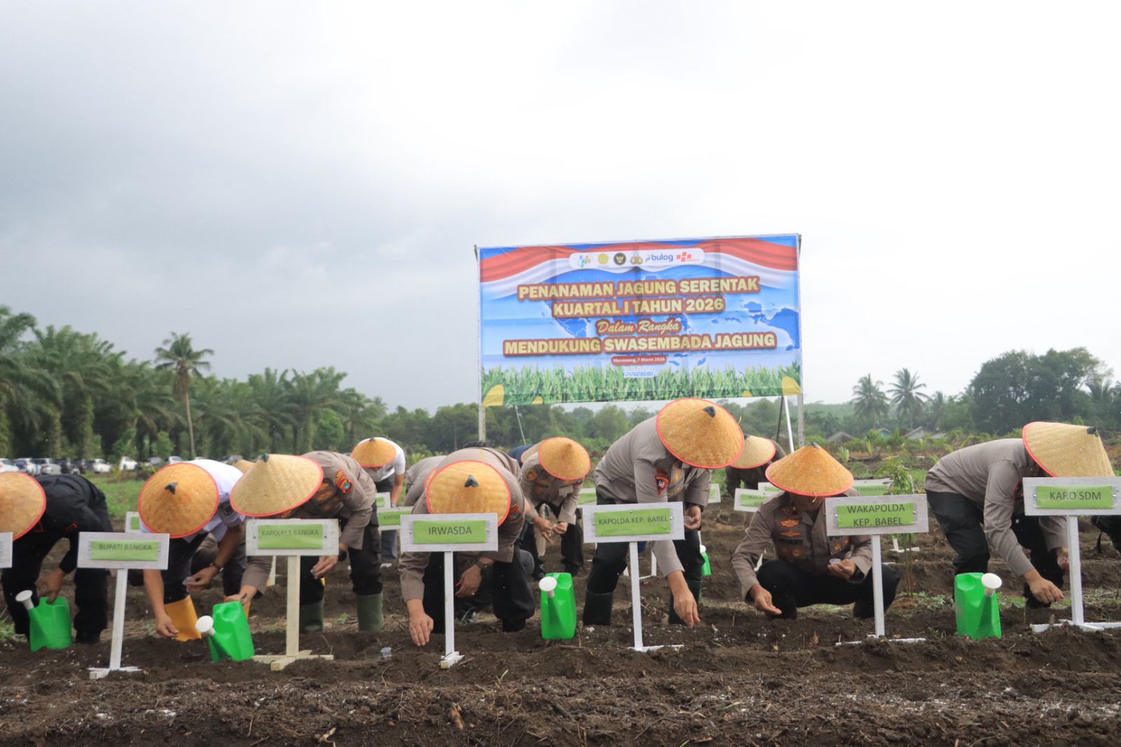 Penanaman jagung tersebut dihadiri langsung Kapolda Kepulauan Bangka Belitung Irjen Pol Dr. Viktor T. Sihombing, S.I.K., M.Si., M.H., didampingi Wakapolda Brigjen Pol Murry Miranda, S.I.K., M.H., serta para pejabat utama Polda Kep. Babel.