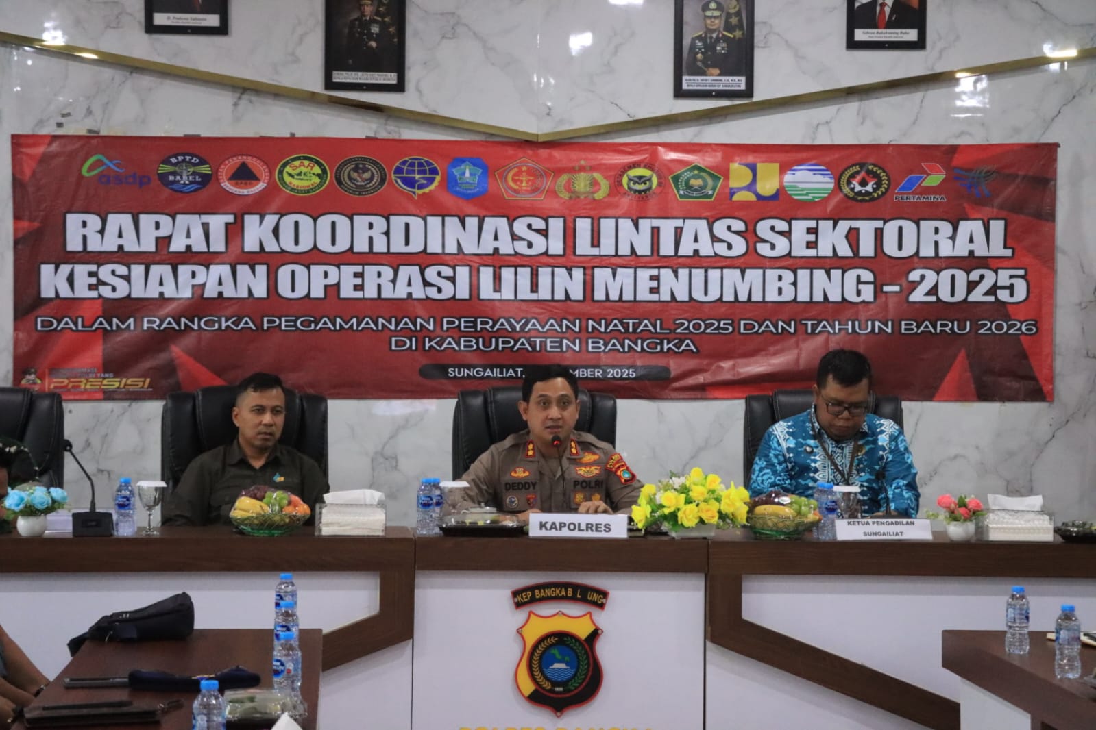 Kapolres Bangka AKBP Deddy Dwitya Putra menegaskan bahwa rapat lintas sektoral ini merupakan langkah awal untuk menyamakan persepsi serta memperkuat sinergi antarinstansi dalam menjaga situasi keamanan dan ketertiban masyarakat (kamtibmas) selama momentum Natal dan Tahun Baru.