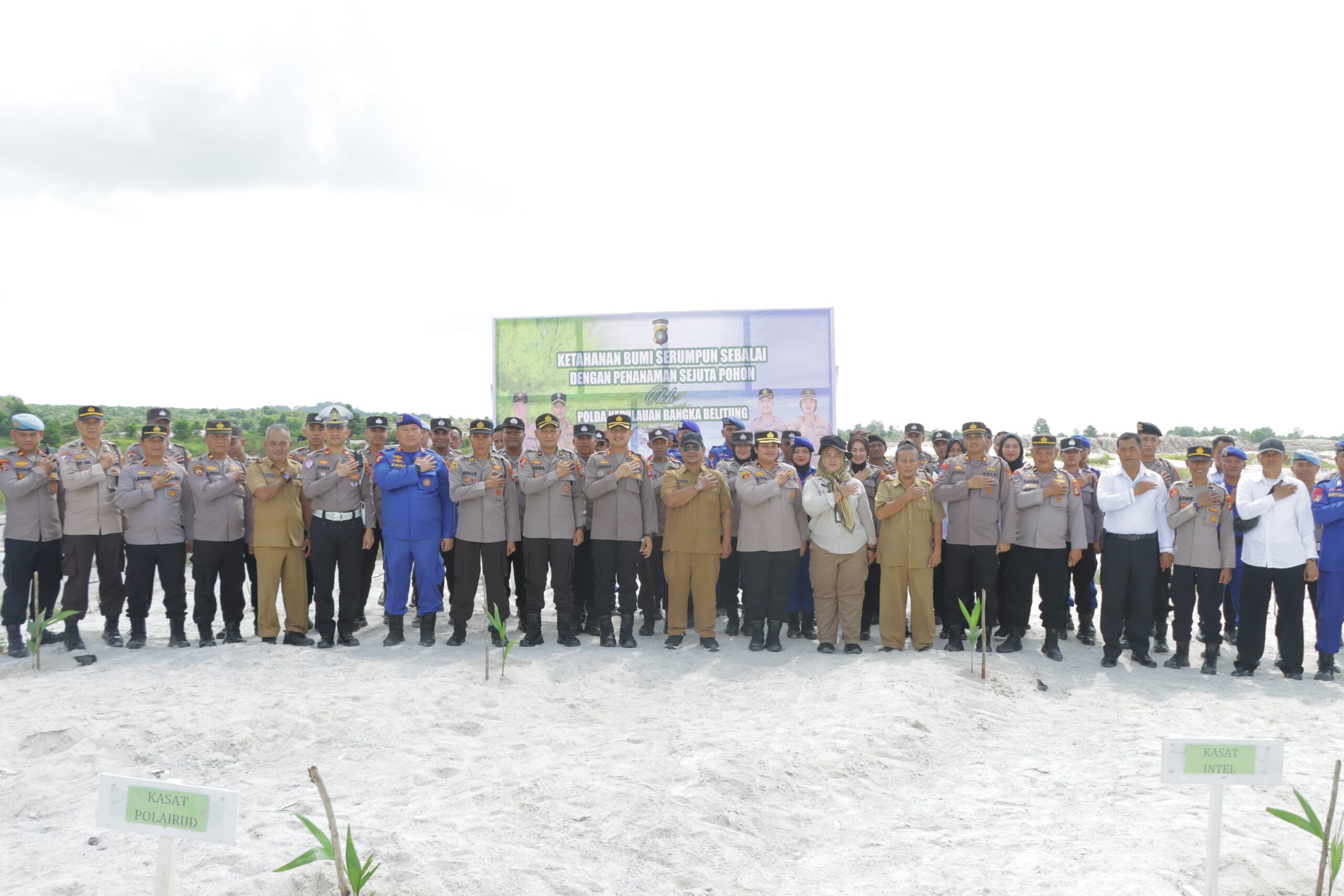 “Saat ini kita melakukan program Polda Kep.Babel yaitu program ketahanan bumi Serumpun Sebalai dengan menanami sejuta pohon,” ujar AKBP Deddy Dwitiya Putra