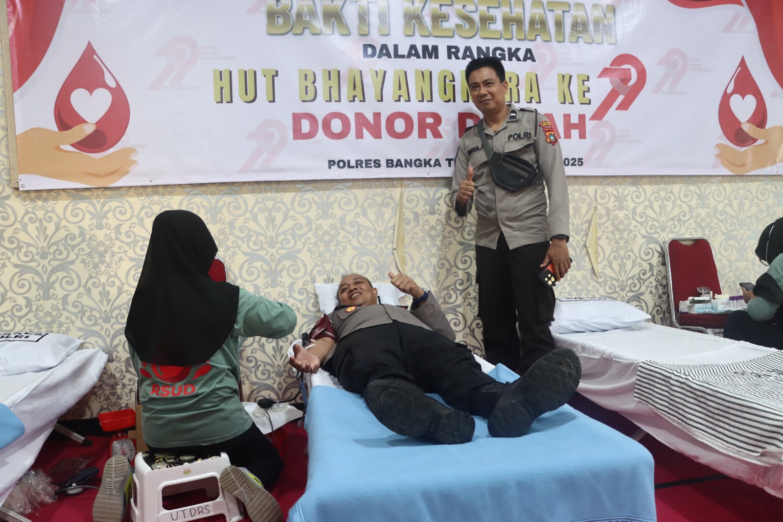 Kapolres Bangka Tengah menegaskan bahwa kegiatan donor darah ini bukan hanya sebagai bentuk perayaan HUT Bhayangkara, tetapi juga merupakan wujud nyata kepedulian Polri terhadap sesama.