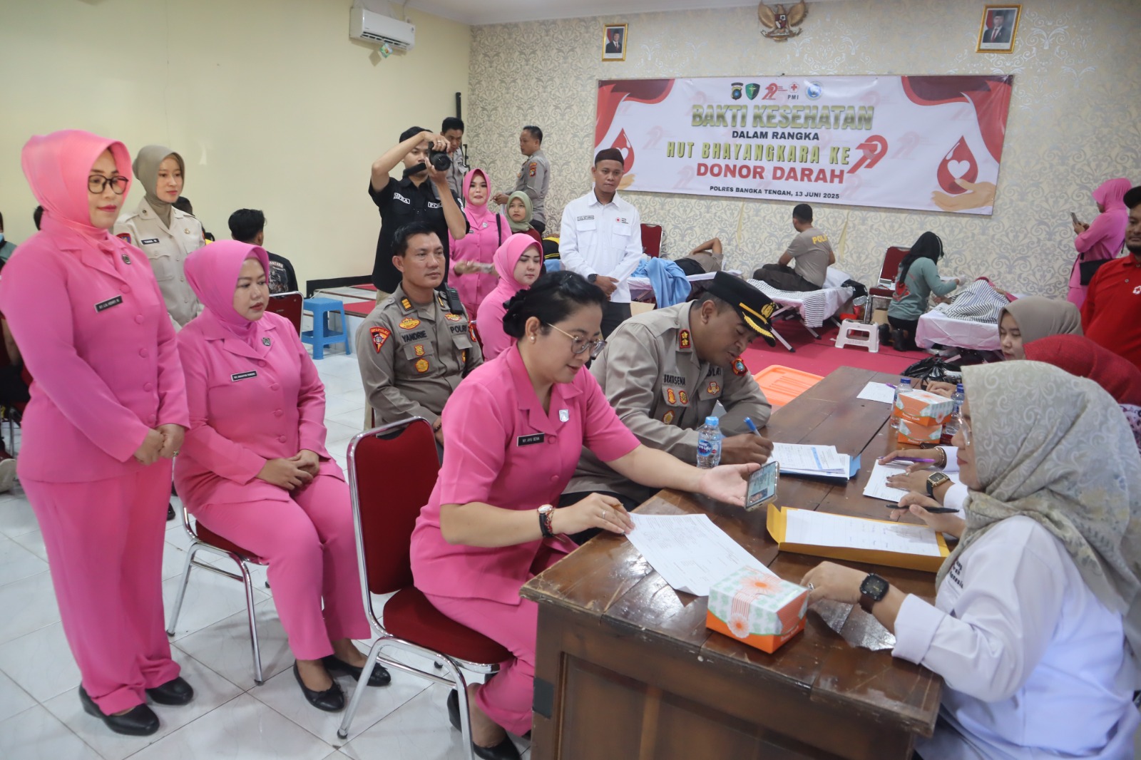 Sementara itu, Ketua Bhayangkari Cabang Bangka Tengah Ny. Ayu Sena juga berpartisipasi aktif dengan ikut menyumbangkan darahnya dalam kegiatan tersebut.