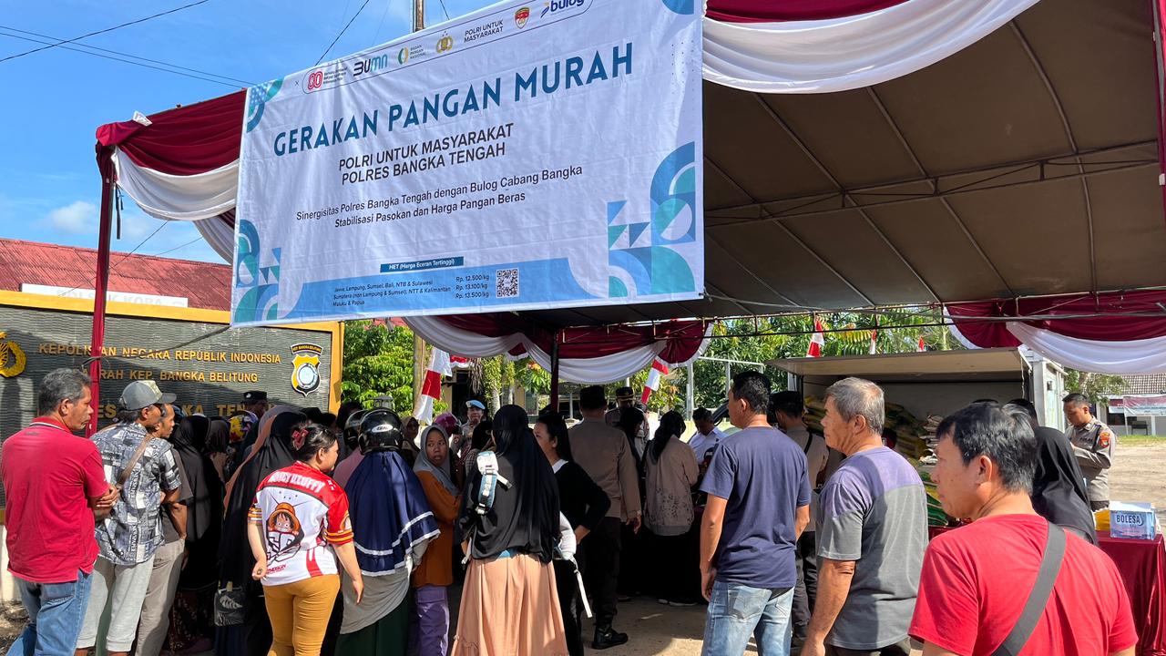 Kapolres Bangka Tengah AKBP Dr. I Gede Nyoman Bratasena, S.I.K., M.I.K., melalui Kasi Humas IPTU Erwin Syahri menyampaikan bahwa kegiatan ini merupakan bentuk nyata kepedulian Polri terhadap masyarakat, khususnya dalam membantu menjaga stabilitas harga dan ketersediaan pangan menjelang perayaan HUT RI.