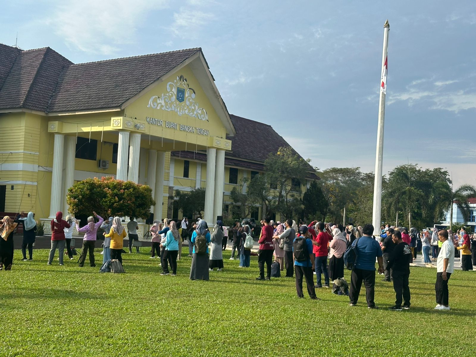 Kegiatan juga dihadiri oleh Bupati dan Wakil Bupati Bangka Tengah, unsur OPD Pemkab, Wakapolres, para Pejabat Utama Polres, serta masyarakat umum yang turut berolahraga di kawasan perkantoran.