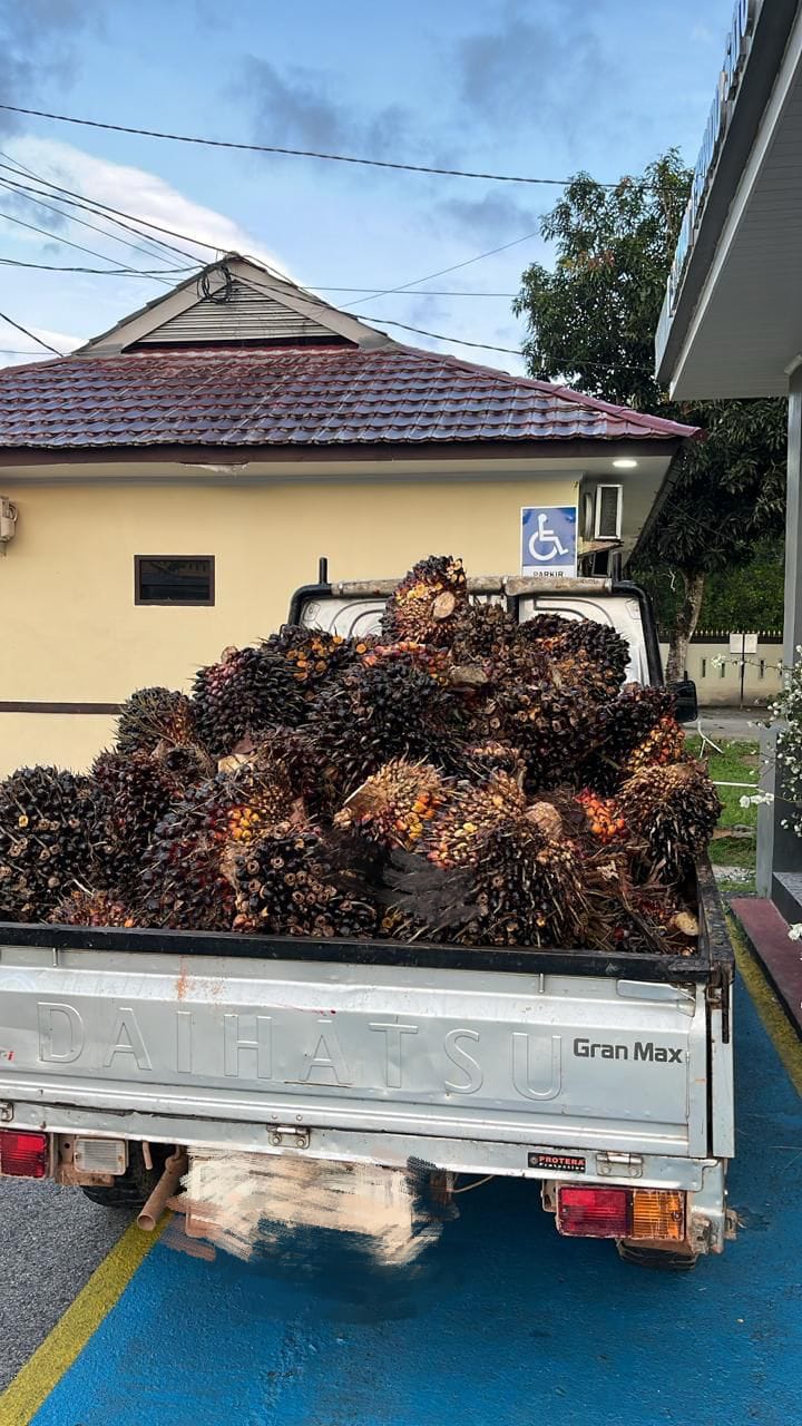 Berdasarkan keterangan saksi dan informasi yang dihimpun di lapangan, para pelaku menggunakan satu unit mobil Daihatsu Grandmax warna silver dengan plat nomor BN 8497 TC untuk mengangkut tandan buah segar (TBS) hasil curian.
