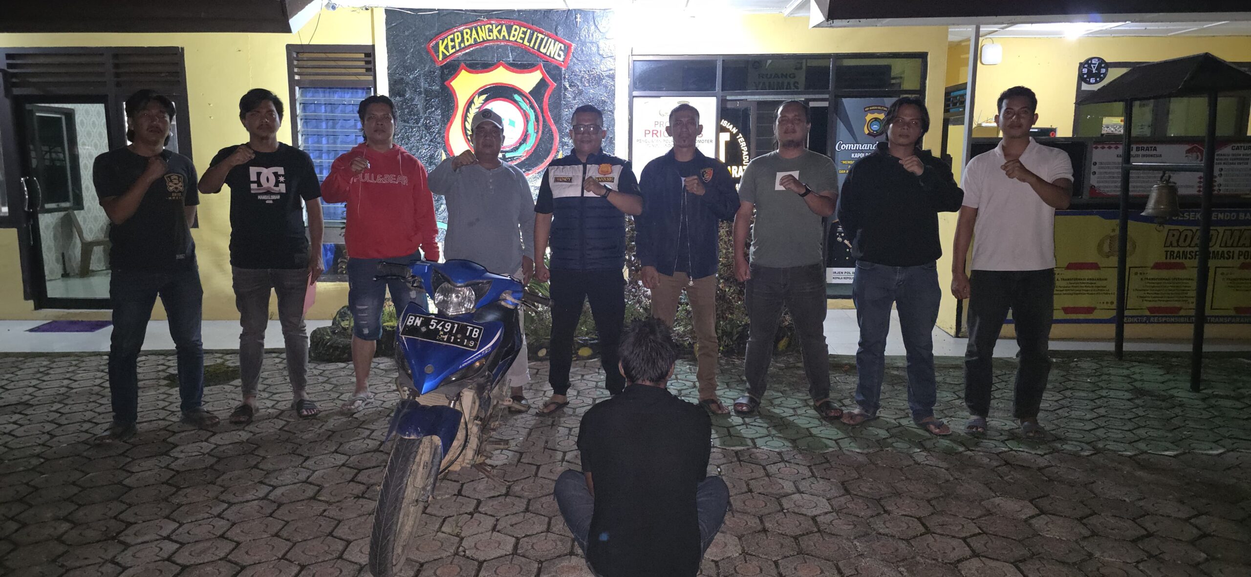 Menerima laporan tersebut, Unit Res-Intel Polsek Mentok langsung melakukan penyelidikan dan berhasil melacak keberadaan sepeda motor serta pelaku di wilayah Desa Kace. Penangkapan dilakukan pada Senin malam (02/06/2025) sekitar pukul 22.30 WIB tanpa perlawanan.