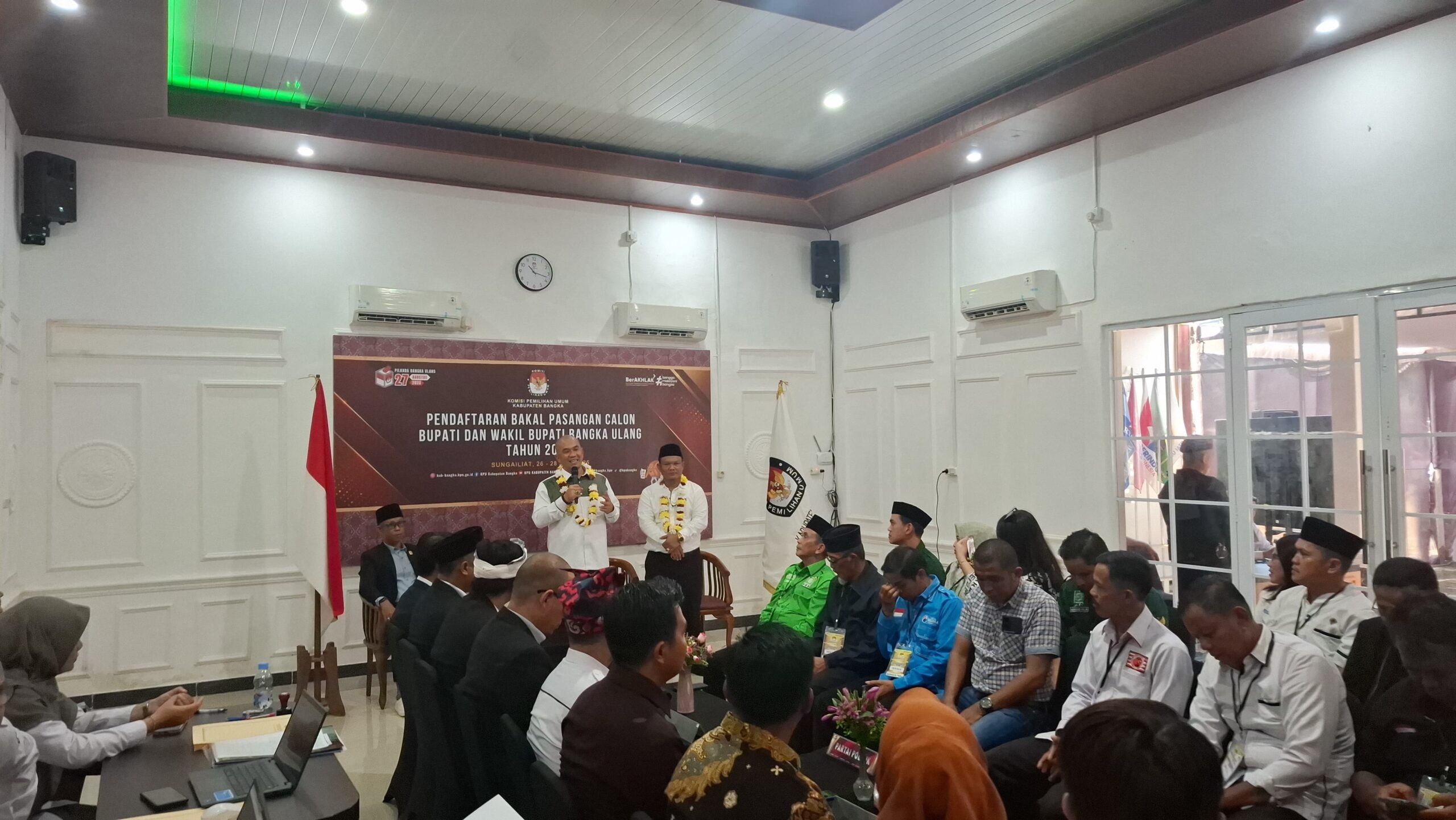Sungailiat, Kejarberitanews.com– Pasangan calon Bupati dan Wakil Bupati Bangka, Andi Kusuma dan Budiono, menjadi pasangan pertama yang mendaftarkan diri ke Komisi Pemilihan Umum (KPU) Kabupaten Bangka dalam rangka Pilkada Ulang 2025. Keduanya hadir langsung di Kantor KPU pada hari pertama masa pendaftaran, Kamis (26/6).