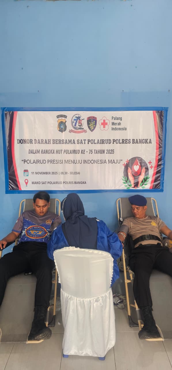 Bangka, kejarberita-news.com – Satuan Polisi Air dan Udara (Sat Polairud) Polres Bangka menggelar kegiatan donor darah dalam rangka memperingati Hari Ulang Tahun (HUT) Polairud ke-75 tahun 2025 dengan tema “Polairud Presisi Menuju Indonesia Maju”. Kegiatan berlangsung di Mako Sat Polairud Polres Bangka, Selasa (11/11/2025) pagi.