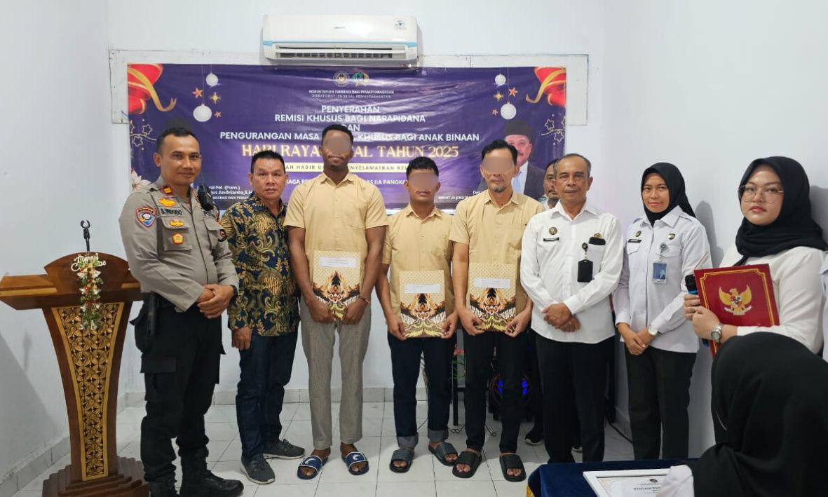 Pangkalpinang, kejarberita-news.com — Sebanyak 10 Warga Binaan Lembaga Pemasyarakatan (Lapas) Kelas IIA Pangkalpinang menerima Remisi Khusus (RK) Natal Tahun 2025 sebagai bentuk penghargaan Negara atas komitmen mereka dalam menjalani pembinaan. RK diserahkan saat peringatan Hari Raya Natal, Kamis (25/12), dengan rincian 15 hari kepada 2 orang, 1 bulan kepada 6 orang, 1 bulan 15 hari kepada 1 orang, serta 2 bulan kepada 1 orang.