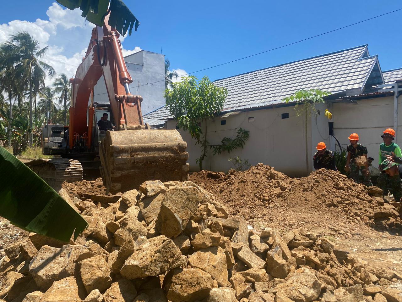 Satgas TMMD dan Warga Gotong Royong Timbun Jalan di Desa Ombulodata