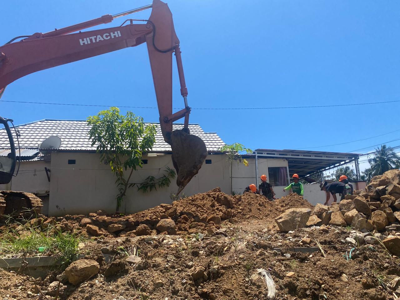 Satgas TMMD dan Warga Gotong Royong Timbun Jalan di Desa Ombulodata