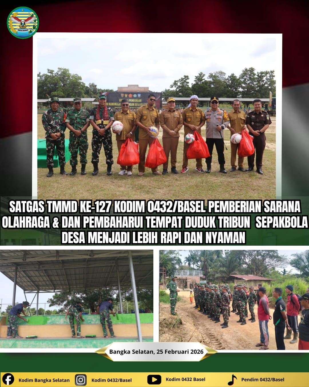 Pulau Lepar Toboali, kejarberita-news.com – Satgas TMM ke- 127 Kodim 0432/Basel tidak hanya fokus pada pembangunan fisik infrastruktur jalan dan rumah, tetapi juga menyasar kepada Pemberian sarana olahraga dan perbaikan sarana olahraga.