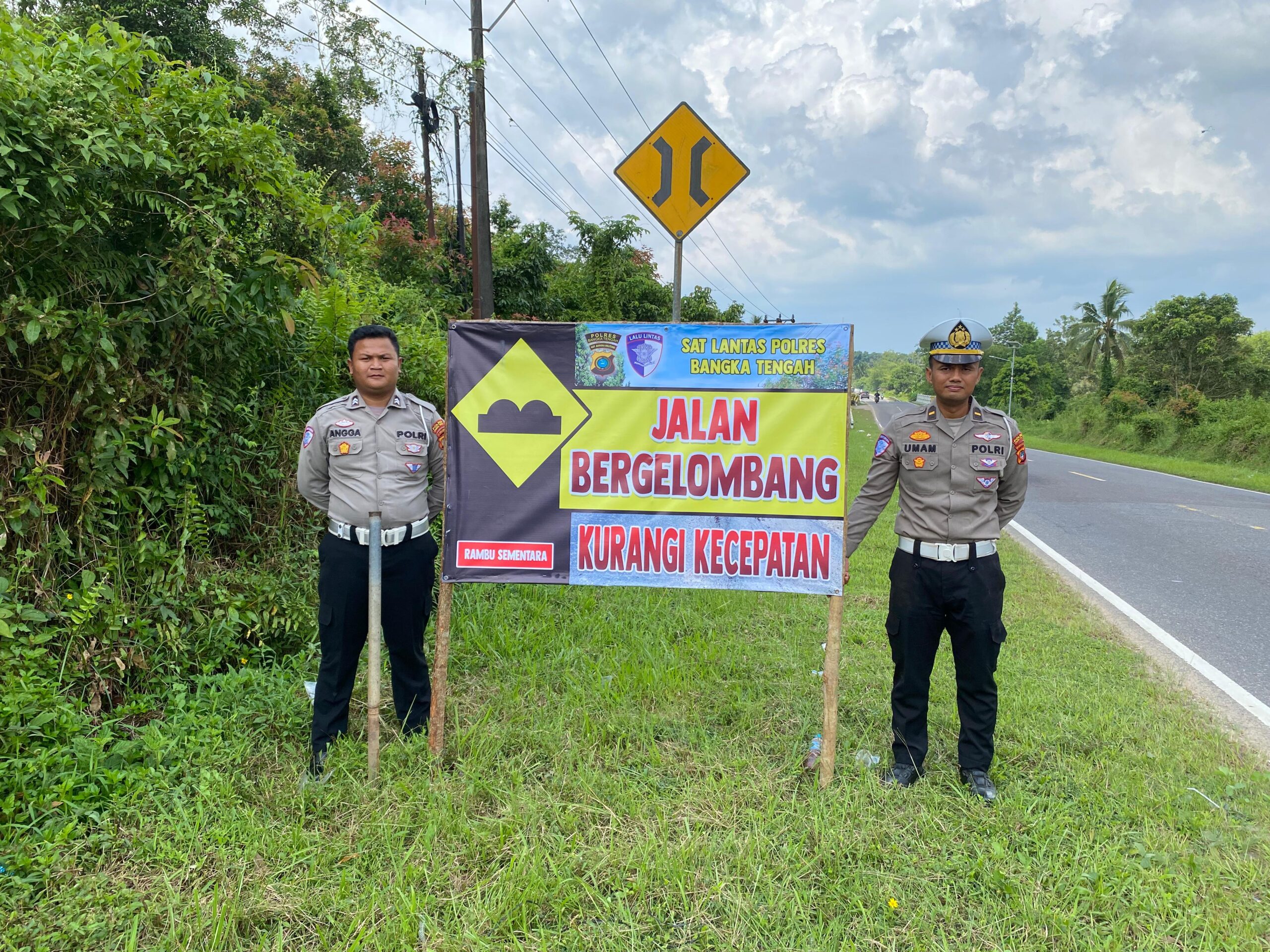 BANGKA TENGAH,kejarberitanews.com-Satuan Lalu Lintas Polres Bangka Tengah bersama Dinas Perhubungan melaksanakan pemasangan spanduk dan rambu lalu lintas di sejumlah titik rawan kecelakaan.