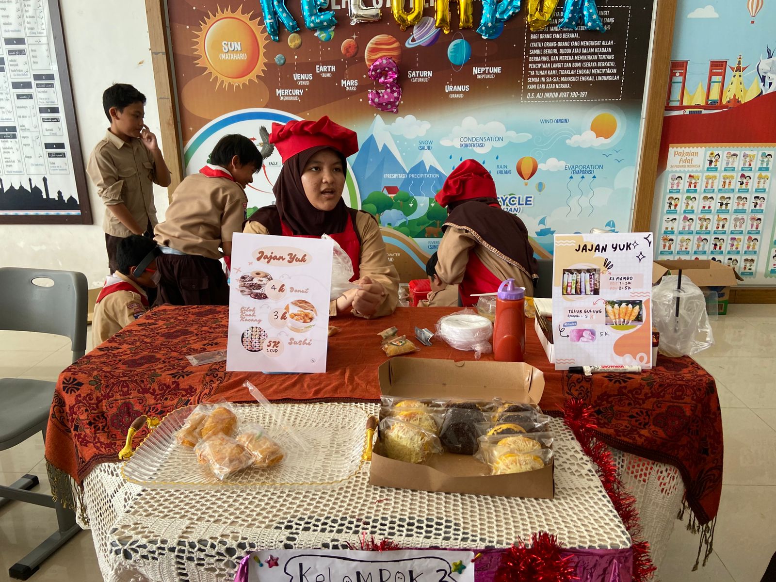 Terpantau berdiri delapan stand yang terbagi menjadi dua yang saling berhadapan, beragam makanan dan juga olahan manis tertata rapi di atas meja stand dengan antusias anak-anak yang ikut membeli yang menunjukan jiwa kewirausahaan mulai tumbuh seiring dengan interaksi antar sebaya terjalin di antara para peserta didik.