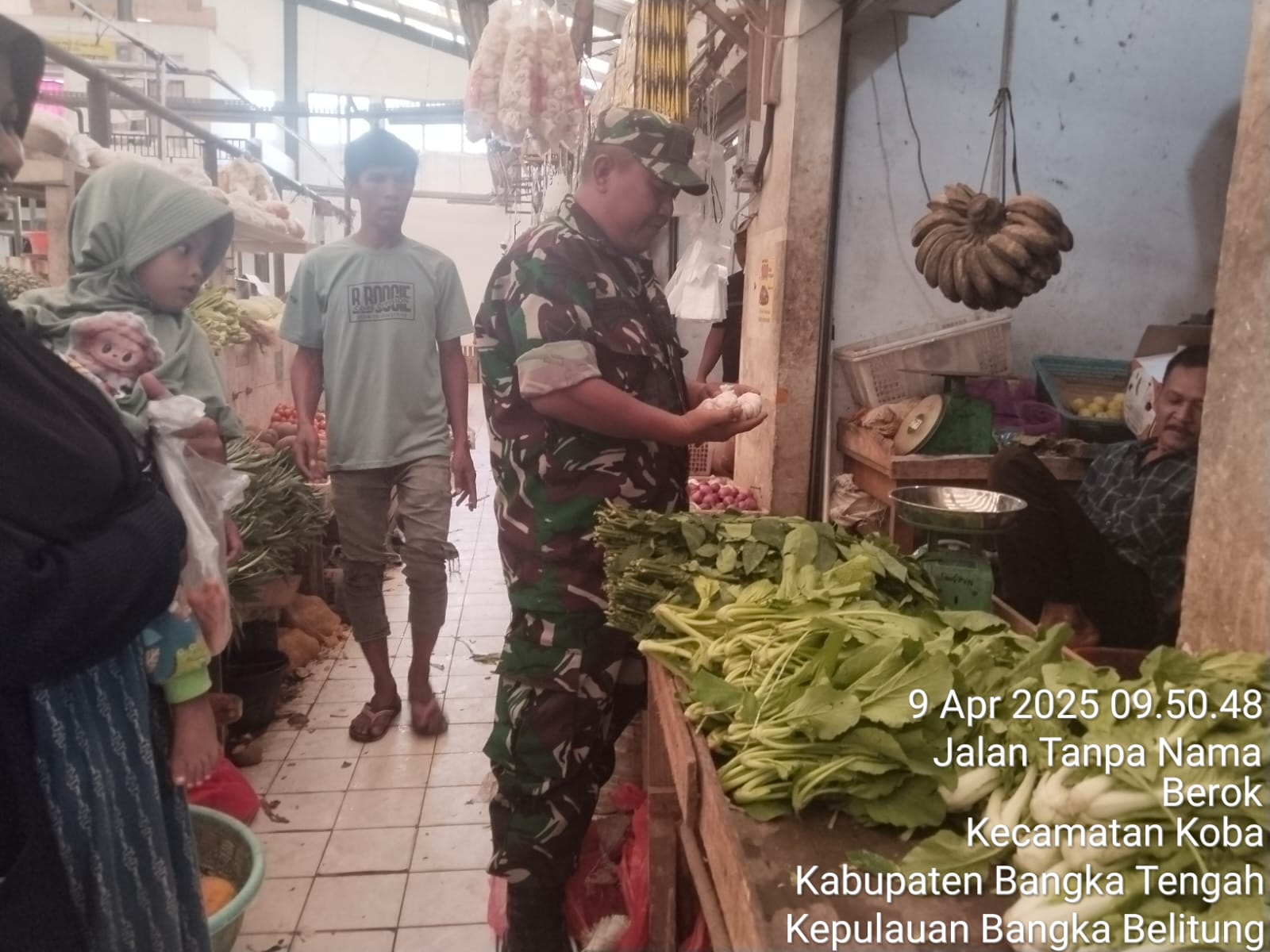 Koba,kejarberitanews.com-Sebagai wujud kepedulian terhadap kebutuhan masyarakat di wilayah binaan, Babinsa koramil 413-07/koba melakukan pemantauan harga sembako bertempat di kelurahan Berok kec.Koba, Rabu (09/04/2025)