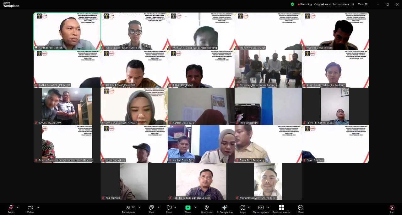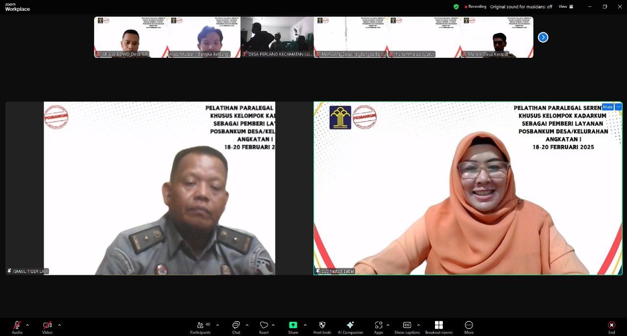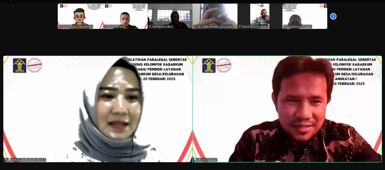 Plt Kakanwil Kementerian Hukum Kepulauan Bangka Belitung Harun Sulianto mengatakan Pelatihan Paralegal Serentak bagi Kelompok Kadarkum hadir untuk menjawab tantangan pemenuhan akses terhadap keadilan di Indonesia yang merata melalui pembentukan Pos bantuan hukum Desa/Kelurahan. Juga untuk meningkatkan Kompetensi Paralegal yang berasal dari Kelompok Kadarkum sehingga mampu memberikan layanan bantuan hukum di Posbankum Desa/Kelurahan setempat .