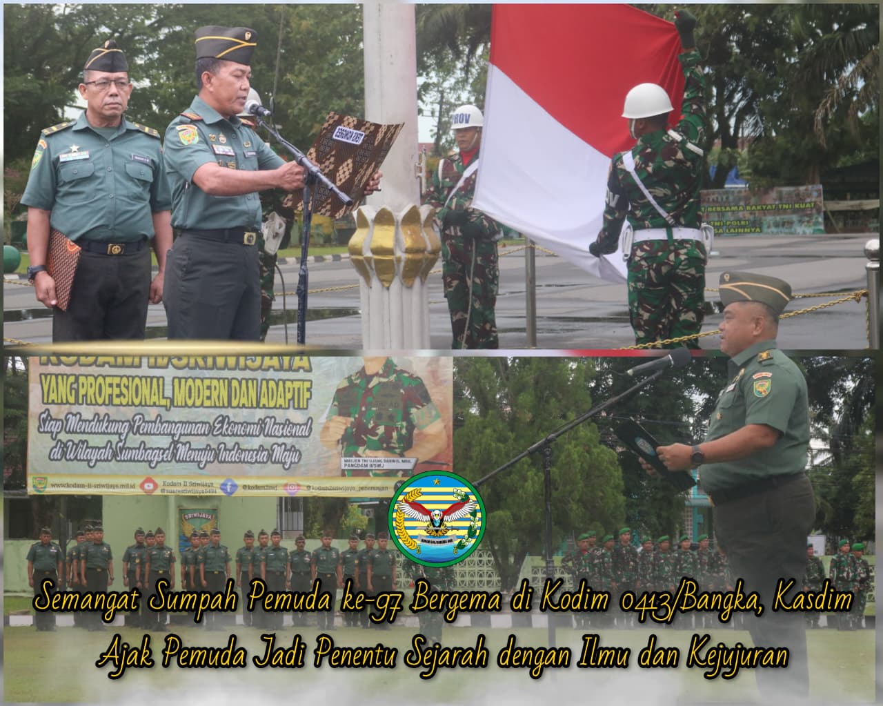 Bangka, kejarberita-news.com – Peringatan Hari Sumpah Pemuda ke-97 tahun 2025 menjadi momen penyemangat bagi seluruh personel TNI dan ASN di jajaran Kodim 0413/Bangka. Upacara yang digelar di Lapangan Makodim Dipimpin langsung oleh Kepala Staf Kodim 0413/Bangka, Letkol Arm Bontor Karo Karo S.Si., M.M., dengan membacakan amanat resmi dari Menpora, Selasa (28/10/2025)