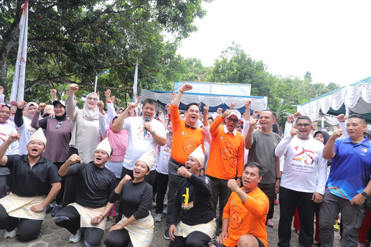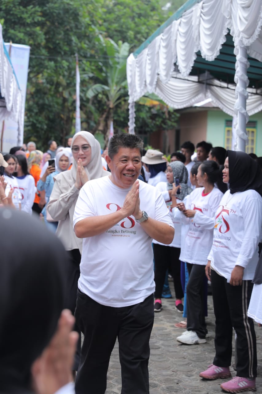 “Saya bersama Pak Bupati, Forkopimda Belitung dan Datuk Away, membuktikan bahwa pemerintah Babel hadir bersama rakyat dalam perayaan HUT ke-25 Babel. Kalau dulu perayaan HUT Babel dilakukan secara terpisah, ada yang di hotel dan tempat lain, tapi tahun ini kita rayakan bersama-sama dengan rakyat, dengan roadshow ke tujuh kabupaten kota se-Babel,” ujarnya.