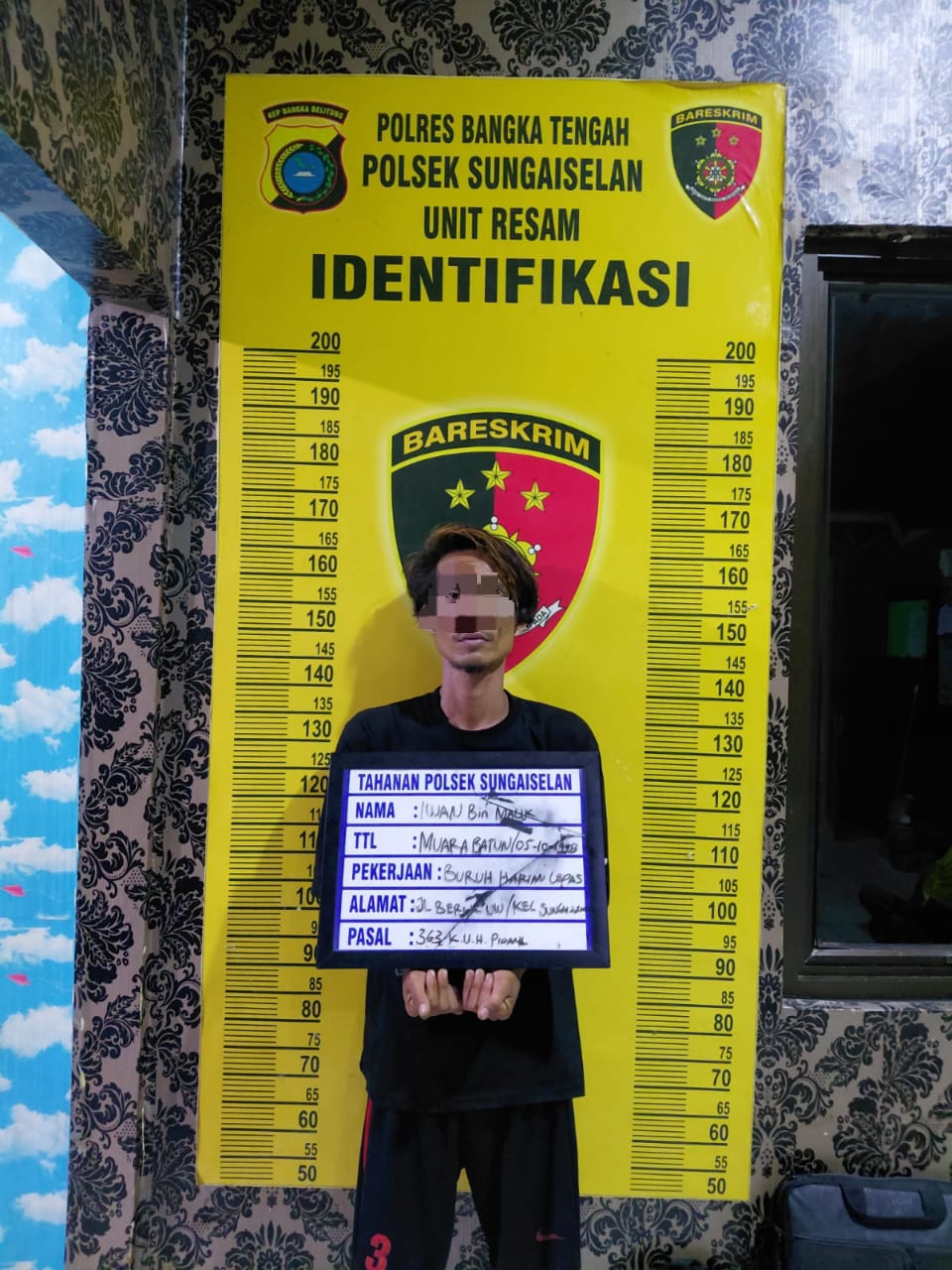Pelaku berinisial IW (27), warga Desa Batun, Kecamatan Jejawi, Kabupaten OKI, Sumsel, yang diketahui telah menetap di Sungai Selan, Bangka Tengah. IW menjalankan aksinya bersama seorang rekannya berinisial SM (58), yang juga berasal dari desa yang sama dan kini berdomisili di Kelurahan Sungai Selan, Kecamatan Sungaiselan. SM berhasil diamankan di kediamannya di Sungaiselan oleh petugas.
