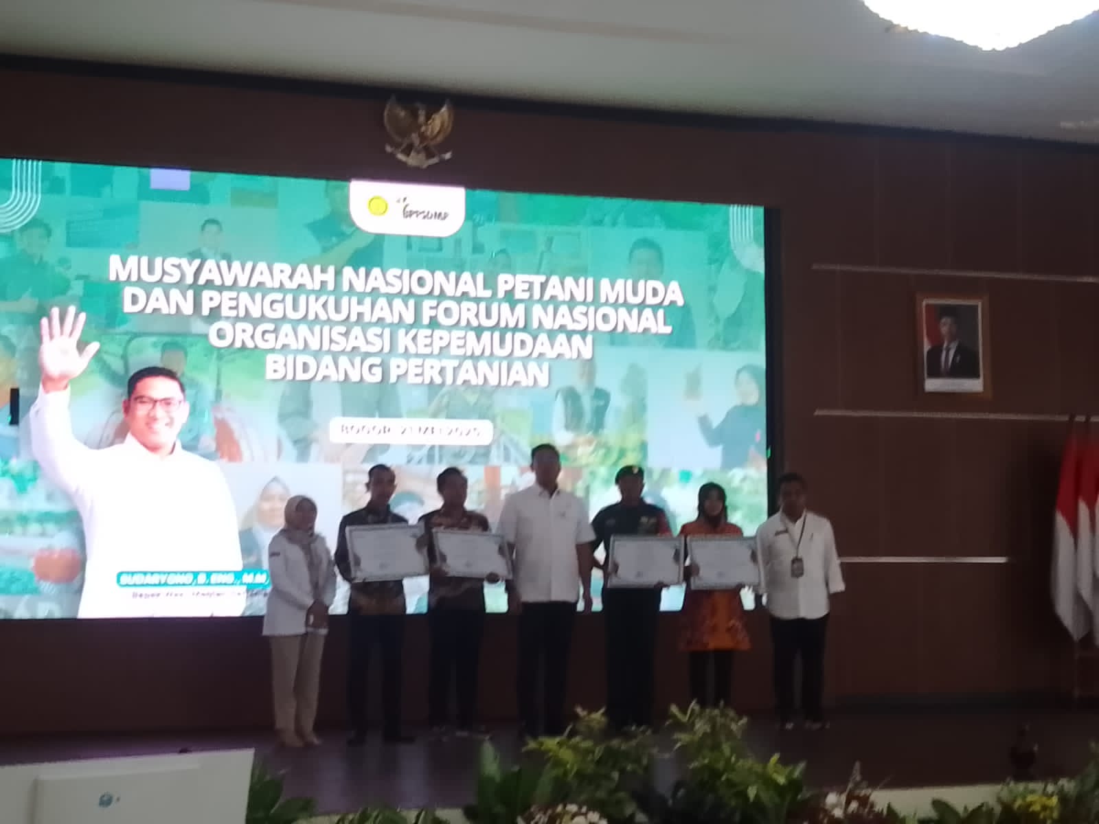 Penghargaan diserahkan dalam rangkaian acara Musyawarah Nasional Petani Muda serta Pengukuhan Forum Nasional Organisasi Kepemudaan Bidang Pertanian yang digelar di Bogor, Rabu (21/5/2025).