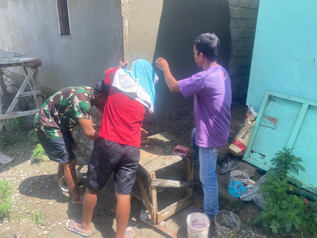 Ombulodata,kejarberitanews.com- Pembangunan Rumah Tidak Layak Huni (RTLH) milik Bapak Yunus Podu, sasaran TMMD ke-124 Kodim 1314/Gorut, kini memasuki tahap akhir, tinggal plester luar dan pasang daun pintu serta jendela (19 Mei 2025)