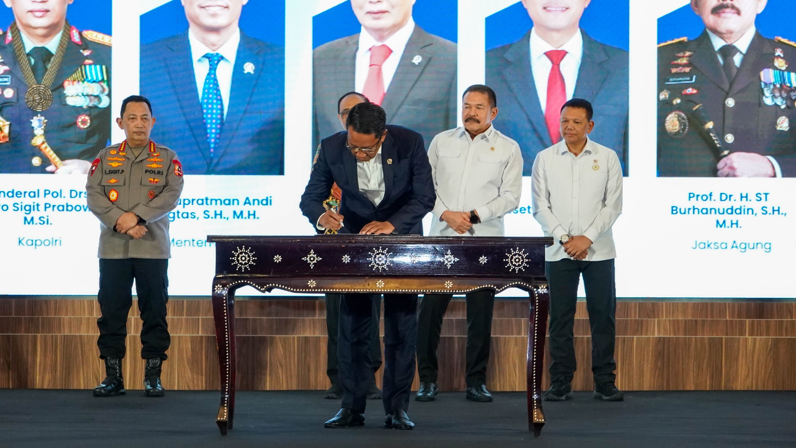 Kesepakatan ini ditandai dengan pembubuhan paraf DIM RUU KUHAP oleh Menteri Hukum (Menkum), Supratman Andi Agtas; Ketua Mahkamah Agung, Sunarto; Jaksa Agung, ST Burhanuddin; Kapolri Listyo Sigit Prabowo; dan Wakil Menteri Sekretariat Negara, Bambang Eko Suhariyanto, Senin (23/6/2025) di gedung Kementerian Hukum (Kemenkum).